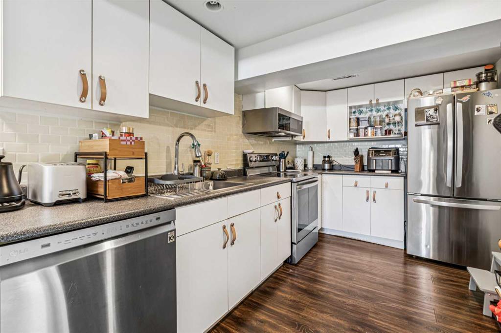 From the moment you step inside, you’ll appreciate the thoughtful design and modern finishes throughout. New wide-plank vinyl flooring flows seamlessly across the home, complemented by all-new appliances, new countertops, and stylish new cabinetry that elevate both form and function. The inviting living room is anchored by a gorgeous wood-burning fireplace, wrapped in sleek black tile for a striking contemporary focal point. 2 bedrooms upstairs with a 4-piece bath and partial kitchen set up for entertaining upstairs. The full kitchen along with another bathroom, bedroom, laundry room and living room are located in the basement. The main level can easily be converted back into a full kitchen if wanted, however the set up now offers great use of the space!