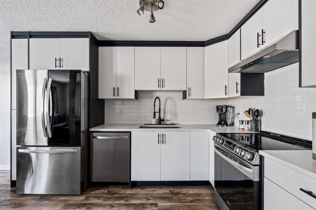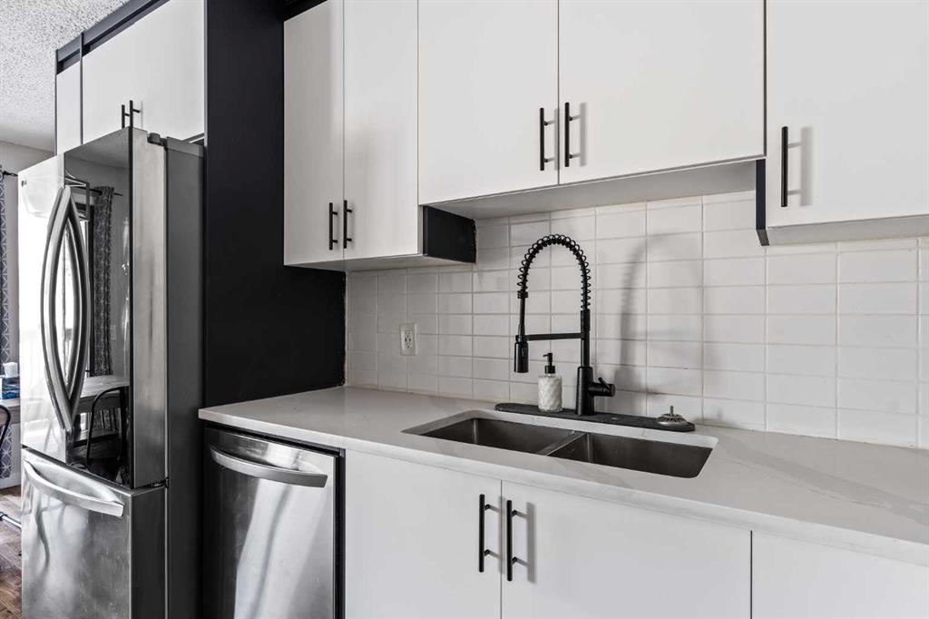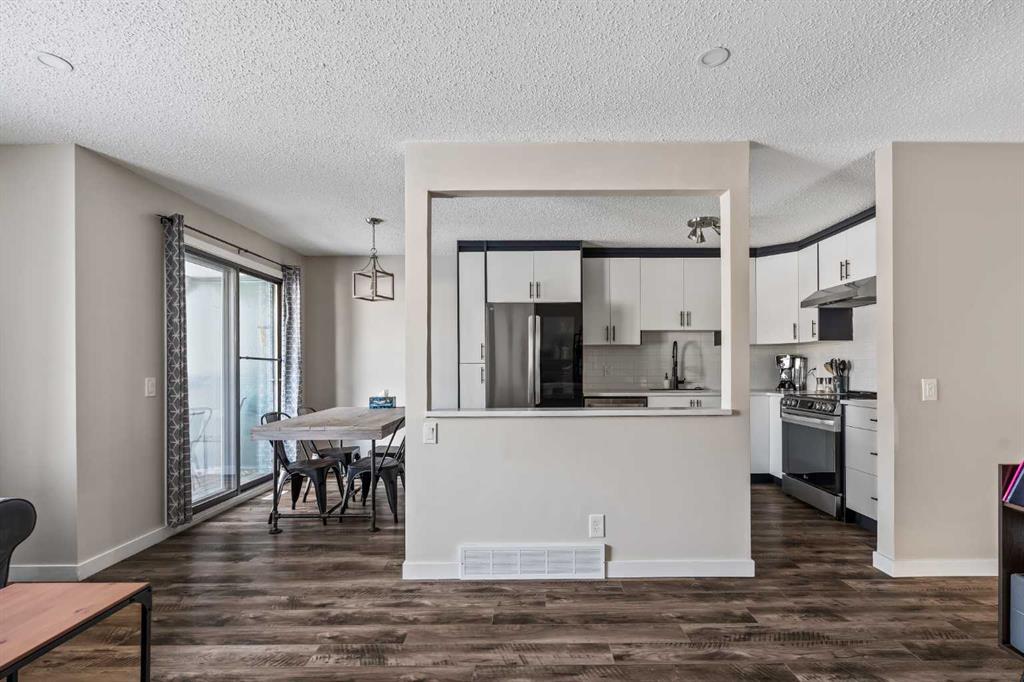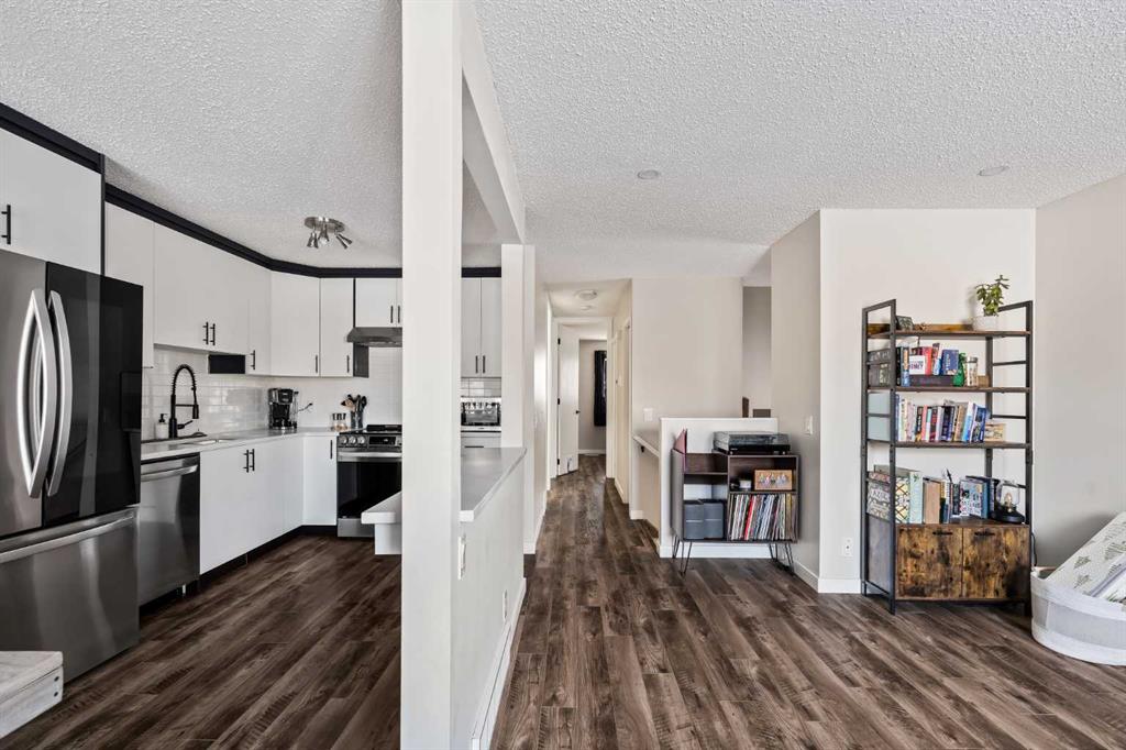 An excellent opportunity to own a freehold home with NO CONDO FEES in the heart of Airdrie Meadows, offering outstanding value at under $375,000, located in the vibrant and walkable community of Airdrie Meadows, just steps from countless amenities. Offering nearly 1,500 sq. ft. of developed living space across two levels, this updated home strikes the ideal balance between functionality, comfort, and location. The main level features durable laminate plank flooring throughout, with large windows in the living and dining areas that flood the home with natural light throughout the day. The kitchen overlooks both spaces and is enhanced by a pass-through opening, creating a more open and connected layout. The living room is positioned at the front of the home, while the dining area provides access to a private balcony. The spacious kitchen has been recently updated with new cabinetry and a full suite of new stainless-steel appliances, including a French-door refrigerator, dishwasher, electric range, and range hood (2023). Two well-sized bedrooms, a 4-piece bathroom, and a linen closet complete the main level. The lower level offers a large recreation room, ideal for a media area and children’s play space. A generously sized additional bedroom at the rear of the basement (bedroom window does not meet current egress requirements) provides excellent flexibility for guests or a secondary living area. This level is completed by a spacious laundry room with a newer washer and dryer and a utility room with additional storage. Outside, the property offers ample green space with a large backyard, perfect for families. A side patio creates an inviting area for summer barbecues and entertaining. Additional features include a rear parking pad and a large storage shed. The home is fully move-in ready, featuring newer appliances, a new water heater (2023), and a new furnace (2025), providing added peace of mind. Ideally located within walking distance to the public library, shopping, restaurants, cafes, schools, playgrounds, and more, this home also offers easy commuting with nearby transit access and quick connections to Main Street and Deerfoot Trail. Don’t miss this opportunity to own a fantastic property in one of Airdrie’s most walkable and convenient communities.