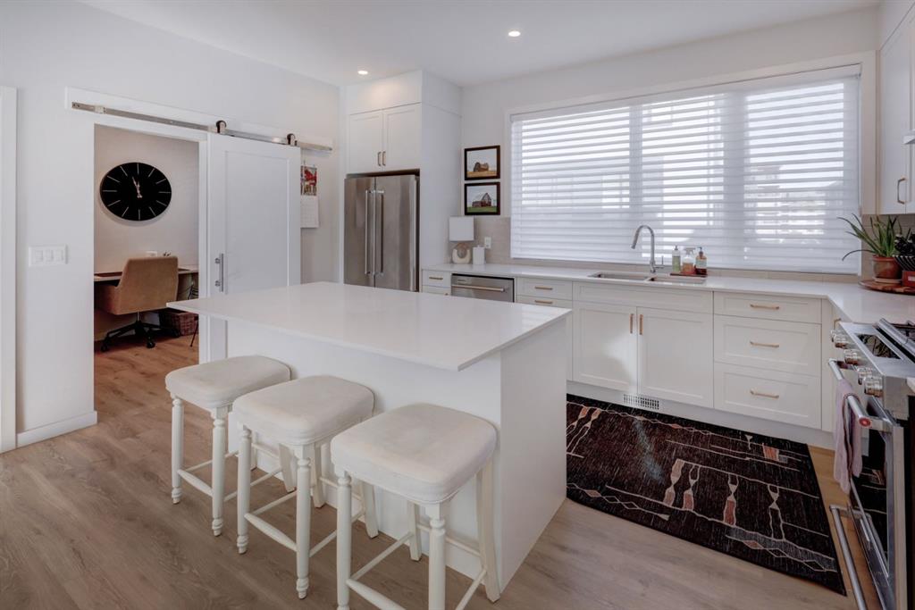 ***Please check out the Virtual Tour!***. Welcome to the community of Medicine Hill and the Village at Trinity Hills. One of Calgary’s most elegant and sophisticated urban dwellings. This end unit town home comes with 1988 square feet of finished living space. The open floor plan flows seamlessly from the gorgeous living room with incredible vistas to the large dining room and gourmet kitchen. The kitchen has a large island, upgraded stainless steel appliances and granite countertops. The kitchen flows perfectly into the dining and living rooms which is fabulous for entertaining family and friends. Upstairs, you will find three bedrooms and 2 4pc bathrooms with one bathroom being the primary bedroom ensuite. In the basement you will find a spacious 2 car double attached garage and recreation room which leads outside to a beautiful patio. Back on the main second floor you will love the outdoor patio to cook, eat and relax all the while enjoying beautiful vistas of forest reserve behind you. This home comes with over $35,000 of additional upgrades which include upgraded appliances, California closets, high end window coverings and upgraded drawers. The Village at Trinity Hills is a revolutionary and modern community for the Calgary area; integrates upscale family living within the parameters of commercial and professional buildings and services. This home allows you to walk out your front door and within minutes be at the grocery store, pharmacy, pet shop, medical building and so much more. Within minutes from Calgary Olympic Park this home provides quick access to downtown and just over an hour to Banff National Park. Please contact me for showing information and come see what modern living in the heart of Calgary looks like in 2026.