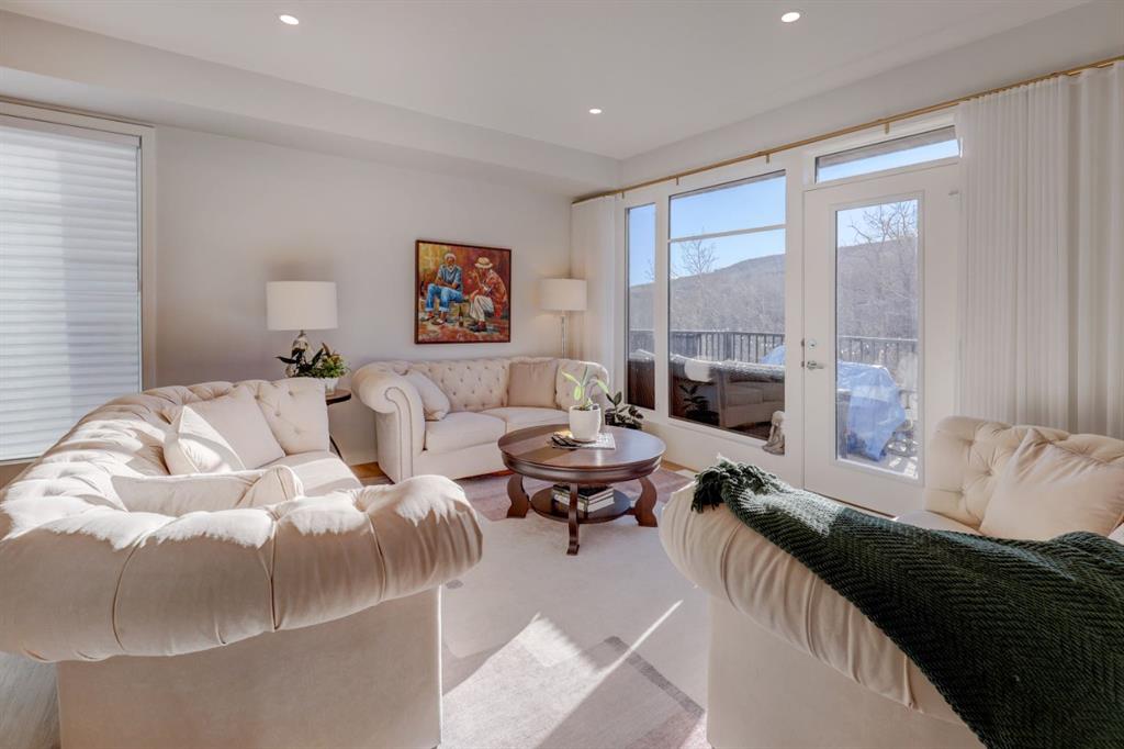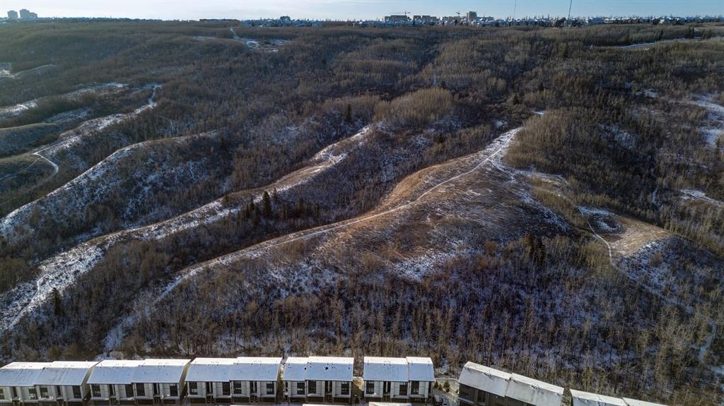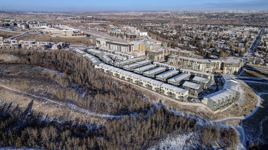 ***Please check out the Virtual Tour!***. Welcome to the community of Medicine Hill and the Village at Trinity Hills. One of Calgary’s most elegant and sophisticated urban dwellings. This end unit town home comes with 1988 square feet of finished living space. The open floor plan flows seamlessly from the gorgeous living room with incredible vistas to the large dining room and gourmet kitchen. The kitchen has a large island, upgraded stainless steel appliances and granite countertops. The kitchen flows perfectly into the dining and living rooms which is fabulous for entertaining family and friends. Upstairs, you will find three bedrooms and 2 4pc bathrooms with one bathroom being the primary bedroom ensuite. In the basement you will find a spacious 2 car double attached garage and recreation room which leads outside to a beautiful patio. Back on the main second floor you will love the outdoor patio to cook, eat and relax all the while enjoying beautiful vistas of forest reserve behind you. This home comes with over $35,000 of additional upgrades which include upgraded appliances, California closets, high end window coverings and upgraded drawers. The Village at Trinity Hills is a revolutionary and modern community for the Calgary area; integrates upscale family living within the parameters of commercial and professional buildings and services (Save on Foods, PetsMart, Calgary Farmers Market and many more!). This home allows you to walk out your front door and within minutes be at the grocery store, pharmacy, pet shop, medical building and so much more. Within minutes from Calgary Olympic Park this home provides quick access to downtown and just over an hour to Banff National Park. Please contact me for showing information and come see what modern living in the heart of Calgary looks like in 2026.