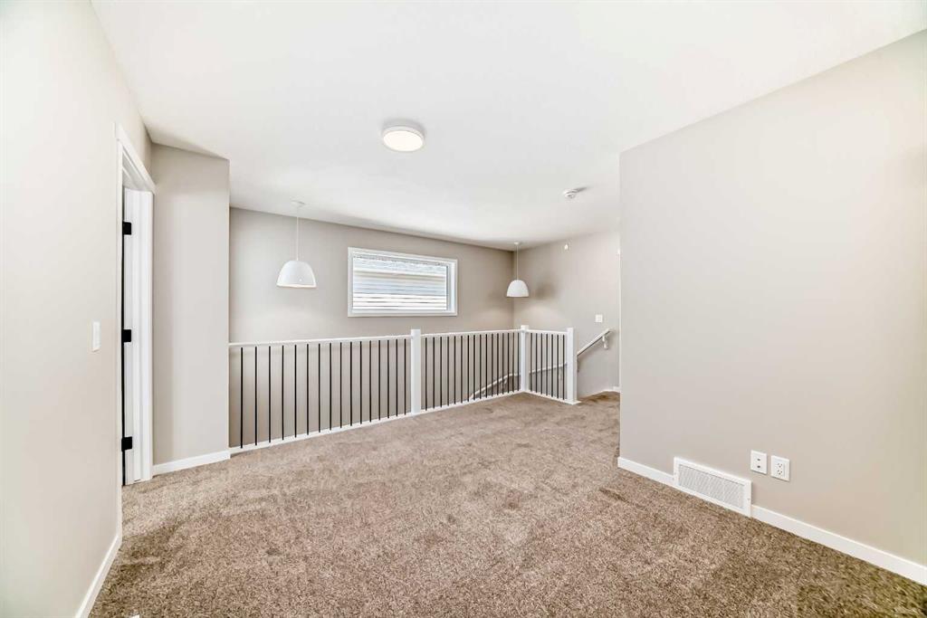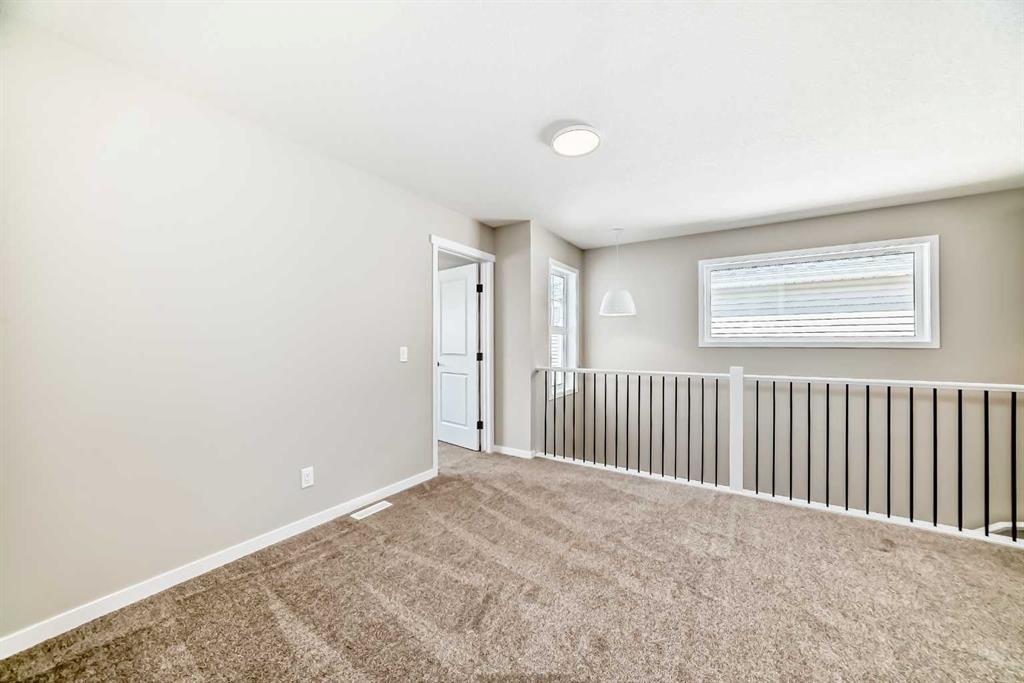 Step into the Carisa, a thoughtfully designed home that perfectly balances style, comfort, and everyday functionality—ideal for modern families seeking exceptional value in a growing community. From the moment you arrive, this home welcomes you with a layout that’s both practical and visually appealing. The open-concept main floor creates a warm, inviting atmosphere where the kitchen, dining, and lifestyle areas seamlessly connect. Large rear windows allow natural light to flood the space throughout the day, thanks to the desirable west-facing backyard, while an added window in the stairwell brings even more brightness to the heart of the home. The kitchen is designed to impress with upgraded quartz countertops, modern cabinetry, a built-in microwave, chimney hood fan, and pot lights that enhance the overall ambiance. An extra-large walk-in pantry offers incredible storage, making it ideal for growing families or avid home cooks. The main and upper floors are finished with sleek spindle railings, adding architectural interest and a clean, modern feel throughout. Upstairs, you’ll find a spacious and flexible entertainment room—perfect for movie nights, a kids’ play space, or even a quiet work-from-home setup. Three generously sized bedrooms, including a beautifully appointed primary suite, provide plenty of room for rest and relaxation. The primary bedroom is complete with a private ensuite, designed to offer a peaceful start and finish to each day. For added convenience, the upper-floor laundry room is just steps away from all bedrooms, making household routines that much easier. Downstairs, the 9-foot foundation sets the stage for future development with even more possibilities. The basement includes a wet bar rough-in and a secondary entrance, offering excellent flexibility for a future legal suite or multi-generational living (pending city approval and permitting). Whether you’re looking to expand your living space or explore income-generating opportunities, the Carisa gives you room to grow. **This home also comes complete with full front and backyard landscaping, including sod, mulch on the side yards, and trees/shrubs in the front as per community guidelines. Located in the emerging southeast Calgary community of Hotchkiss, this home offers more than just a beautiful interior. Hotchkiss is designed for connection—with access to open green spaces, natural wetlands, and future parks that create a serene environment for outdoor enjoyment. The community also boasts easy access to major roadways like Stoney Trail and 22X, making commuting and weekend getaways a breeze. Whether you’re heading downtown or out to the mountains, you’ll appreciate the convenience of this well-connected location. In Hotchkiss, you’ll find the perfect blend of quiet residential living, natural beauty, and proximity to everyday amenities—making it a place where families can truly thrive. The Carisa is more than just a home—it’s a foundation for lasting memories and f