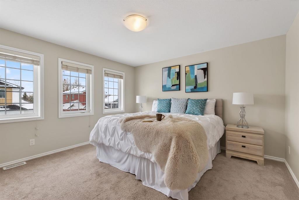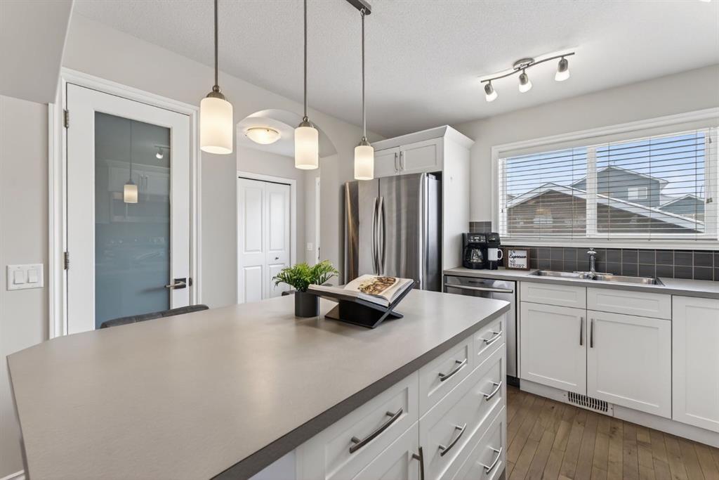 62 Mackenzie is located on a quiet street in the welcoming Havenfields neighbourhood of Carstairs. Completely finished, thoughtfully maintained and upgraded in all the right places, this home is move-in ready from top to bottom. Step inside and the main floor immediately feels bright, fresh, and modern. Both the front and back entrances offer practical drop zones, perfect for shoes, coats, and backpacks, keeping the main living areas tidy and organized. The living room, dining area, and kitchen flow naturally together, making it easy to enjoy everyday life or host friends and family. Large windows and soft modern tones give the space a light and inviting feel. Upstairs is designed for comfort. The primary suite easily accommodates a king-sized setup and is paired with a beautiful ensuite featuring an oversized walk-in shower and a spacious walk-in closet. Two additional bedrooms and a full four-piece bathroom complete this level, and the upper hallway laundry keeps everything right where you need it for day-to-day living.