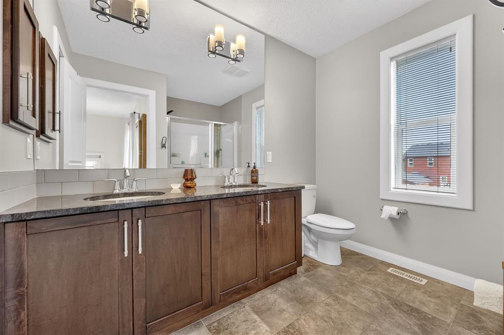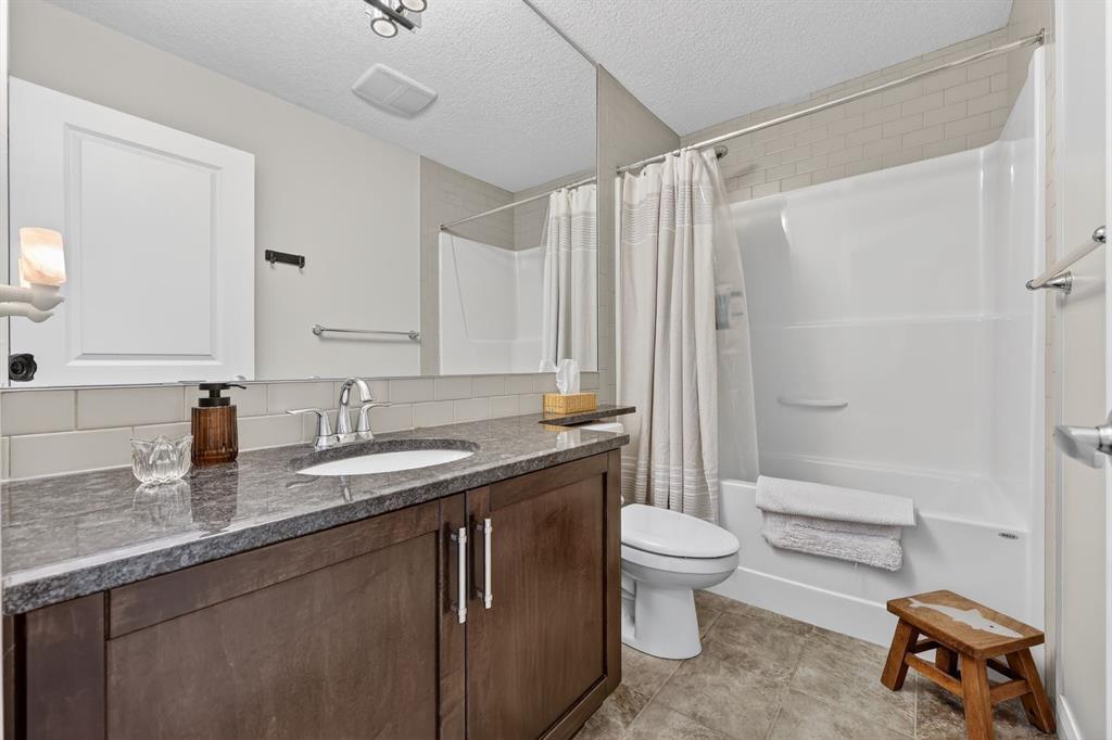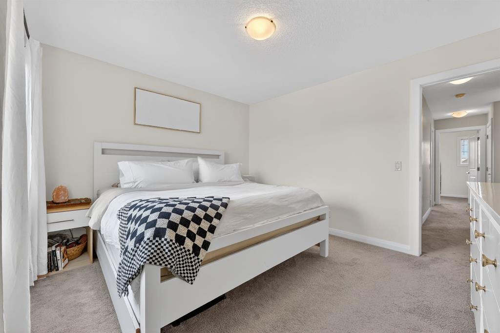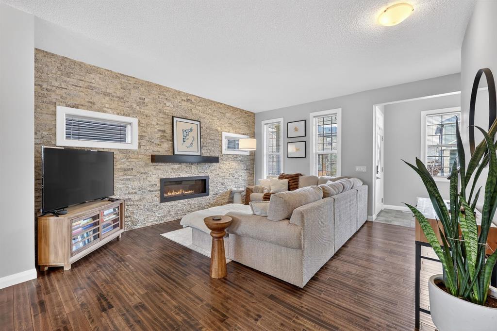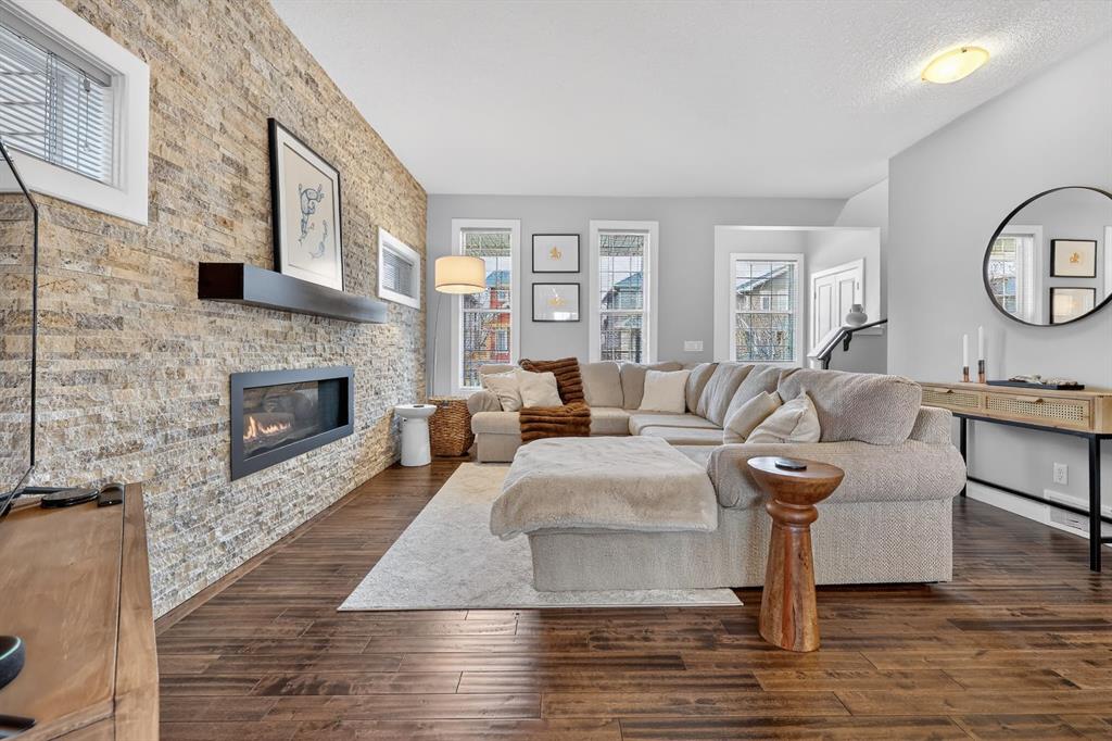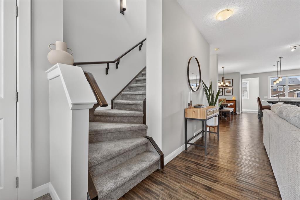 Move-in ready 3-bedroom home, filled with natural light and beautifully finished! The wide-open main floor offers a spacious and cozy living room with a stone feature wall and fireplace, a huge kitchen with ample countertop and storage space, and a large dining area. Upstairs are three good sized bedrooms including the primary with ensuite and walk-in closet, plus an upper-level laundry room with full size washer and dryer. The lower-level full basement, currently framed and unfinished with roughed in plumbing, 9′ ceilings and two windows, is ready for your development ideas. The outdoor spaces include a deck and yard perfect to enjoy with family and friends, and there is a concrete parking pad plus plenty of room for a future double garage if desired. Conveniently located to be close to public transportation, schools, and all amenities. This impeccably maintained family home is priced to sell and should not be missed!