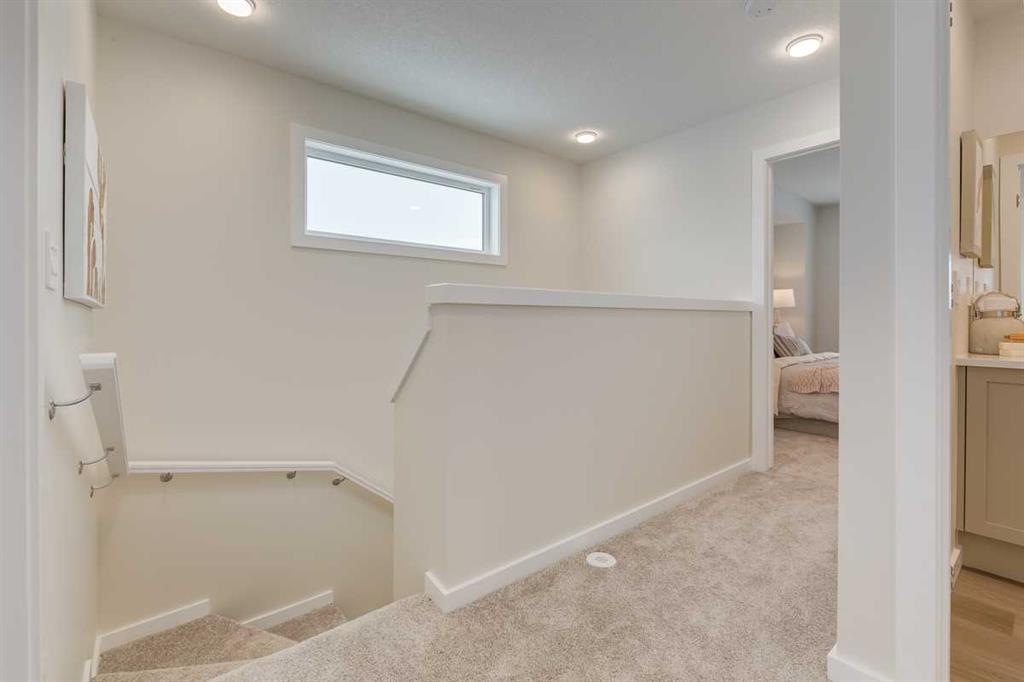 NO NEIGHBOURS BEHIND—JUST SUNRISE ON THE POND AND A REAR DECK THAT ACTUALLY GETS USED. This new, never-lived-in half duplex backs directly onto the greenspace and community storm pond in Starling (NW), offering open sky, long pathway views, and more breathing room than most new builds. Instead of a back fence, you get a quiet outlook that shifts with the light.