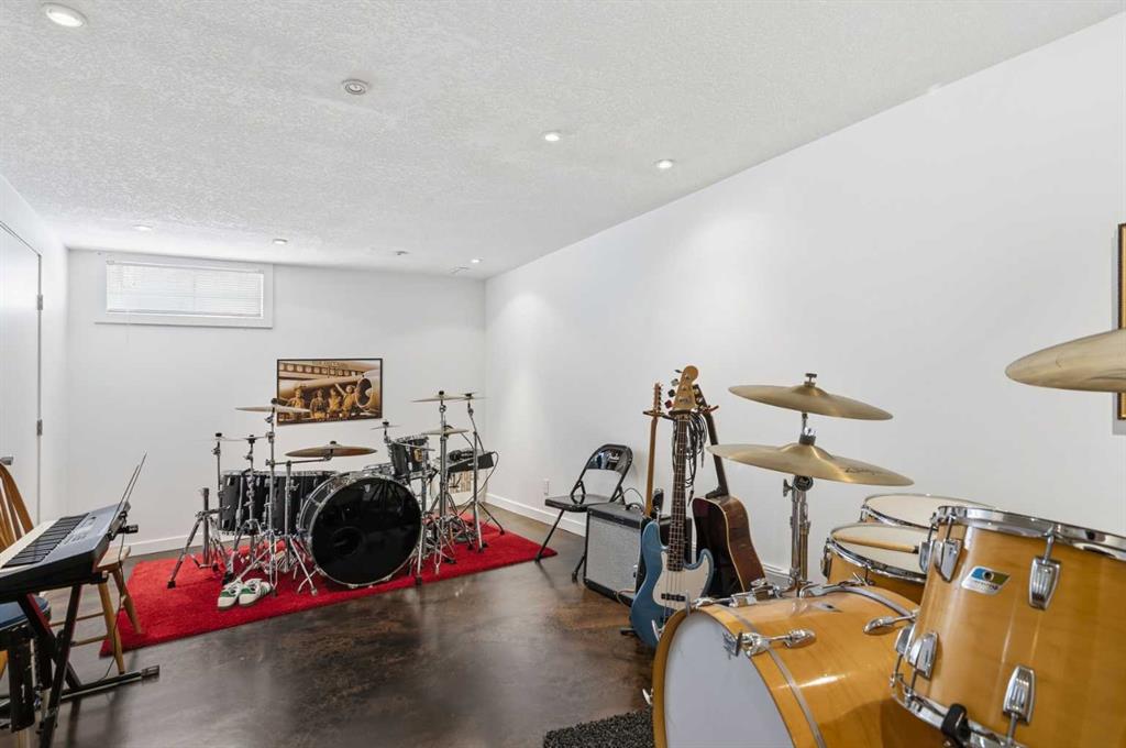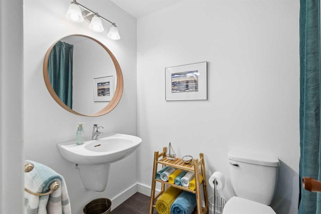 Welcome to the elegant neighbourhood of Elbow Park. This charming Post Modern home offers over 3200 square feet of living space. Tucked away on a one way street and facing forested reserve space your privacy and tranquility is ensured. The Interior features a vaulted wood beamed ceiling with skylights affording sun drenched days. Imagine yourself in a beautiful chalet in the heart of the city. The open floor plan creates a bright and airy living environment. The Cornerstone feature of this home is the raised hearth dual sided bi-level fireplace that can be enjoyed from the living area, dining room, secondary living area and office/den. The upper level feature 3 generous bedrooms. The Primary with En suite and another 4 piece bath for the additional 2 upstairs bedrooms. The sliding patio doors off the kitchen and primary bedroom allow access to the generous deck surrounded by mature trees. In the lower level we have another full wall of windows creating a feeling of outdoor access and allowing ample light. This area offers an additional living space again with full access to the feature fireplace. The office/den area can be whatever you envision. Art studio, playroom – choose your own adventure. The lower level features another generous bedroom as well as ample storage rooms and a large recreation space. A newly renovated 3pc bath makes this the perfect guest space. The ample laundry space has a separate entrance for ease of access. The back yard is fully fenced with a gas firepit that’s perfect for roasting hotdogs and smores or enjoying get-togethers. The detached 3 car garage includes a hydraulic lift as well as shop space. This is a generous green space with mature trees and blooming front garden. An attached double car garage allows ample parking space for family and guests. Situated just a block away from the Elbow River with easy access to top rated schools, The Glencoe, Stanley Park and Shopping. This lovely home presents a rare opportunity to own a special parcel of property in the heart of the city