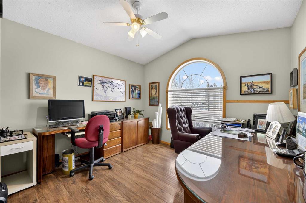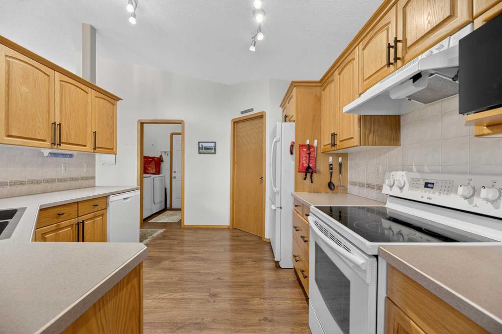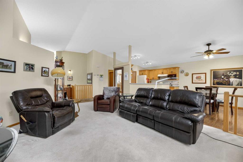 Discover exceptional design and comfort in this spacious 4-bedroom, 3-bath bungalow, thoughtfully crafted to accommodate both main-floor living for a senior-minded buyer and an expansive open layout ideal for a mature family or empty-nesters who love to entertain. The main level features a stunning great-room concept highlighted by vaulted ceilings that span the foyer, living, dining, and kitchen areas, creating a bright and cohesive flow throughout. A gas fireplace anchors the living room, while a second freestanding gas fireplace in the lower-level family room adds warmth and charm. On those warm summer days, the property also boasts Central A/C to cool you down. Two bedrooms (one currently being used as an office) are located on the main floor, including a generous primary bedroom complete with a 4-piece ensuite and walk-in closet. Additional conveniences include a main-floor laundry room with direct access to the heated double-attached garage. The fully developed basement offers impressive versatility with 9-foot ceilings, a wide open staircase, a spacious family/recreation room perfect for a pool table or games area, two additional bedrooms, and a 3-piece bathroom. Outside, the property showcases a meticulous landscaping and the security of a fully fenced yard. A garden shed provides extra storage, while the expansive 12′ x 17′ covered southwest-facing deck offers the perfect setting to enjoy evening sunsets and serene views over the yard. With a beautifully maintained interior living space, this home presents impeccable design, exceptional care, and a layout that truly stands out. Ideally located near Winter Lake, walking trails, and schools, it is surrounded by a picturesque neighborhood and positioned close to shopping, dining, entertainment, essential services, and healthcare options. An outstanding property that must be seen to fully appreciate its quality and presence.
