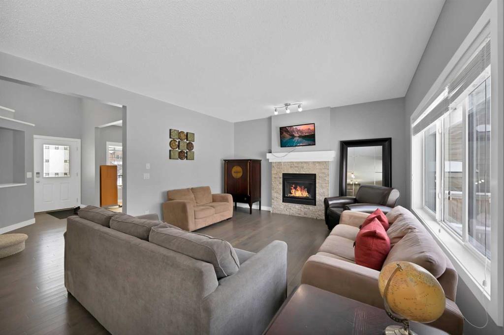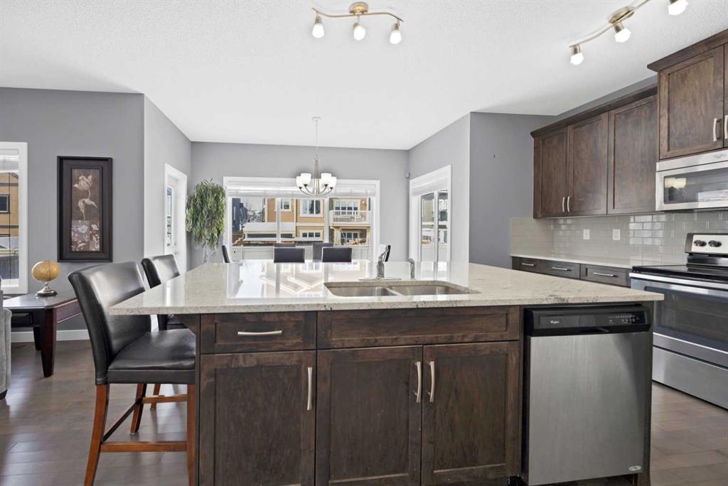 Welcome to this big, bright, and beautiful two-story home in the heart Chestermere, where residents enjoy a vibrant lifestyle just steps from the water. The home offers terrific curb appeal with charming architectural details and expansive front windows that flood the space with natural light. Inside, a bright open-concept layout features a dedicated home office just off the entrance, perfect for working or studying from home. The kitchen includes stainless steel appliances, quartz counters, and a large island for friends and family to gather.