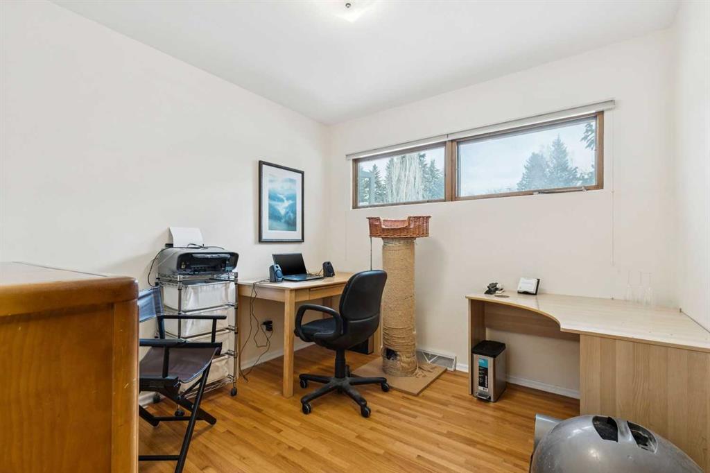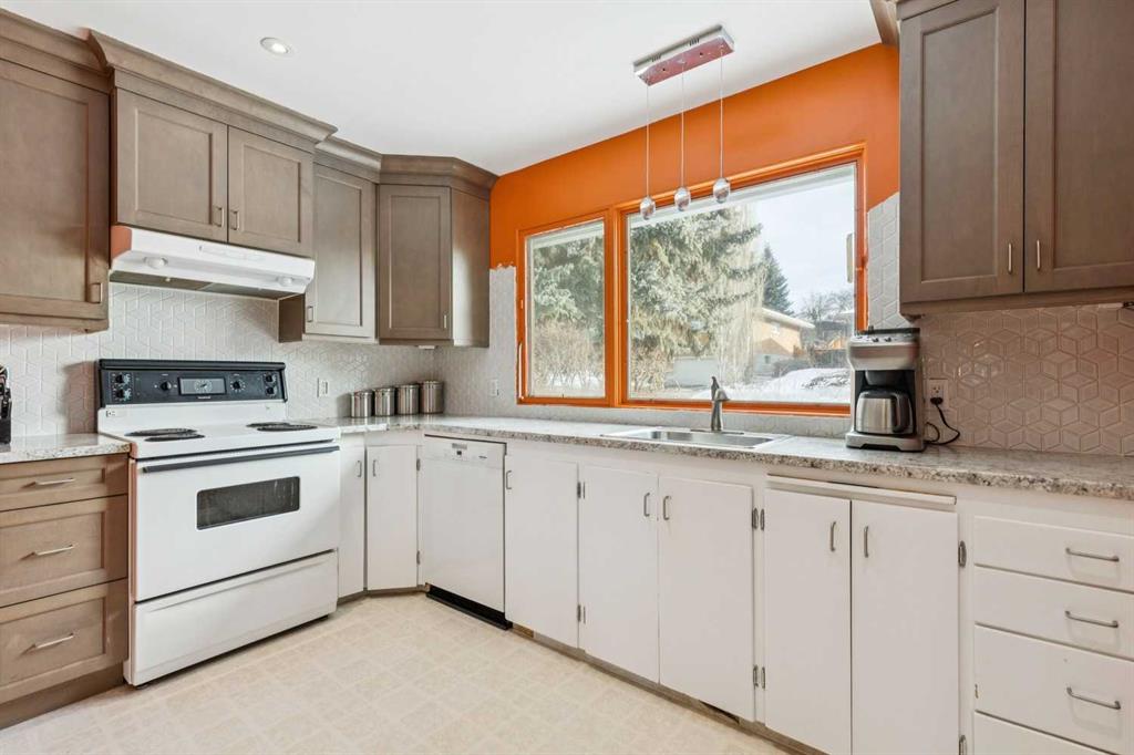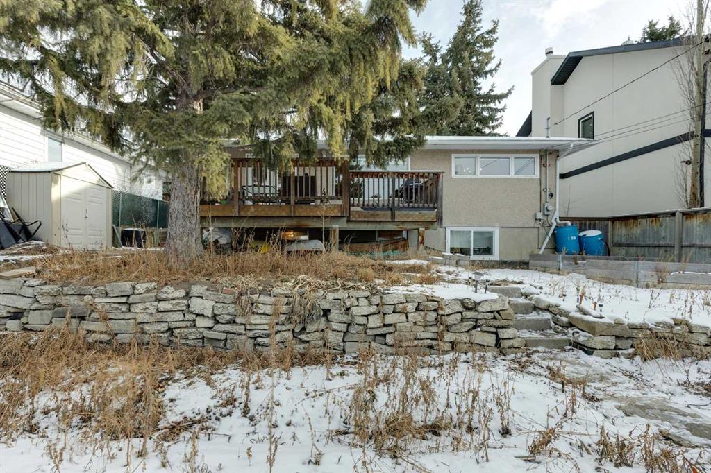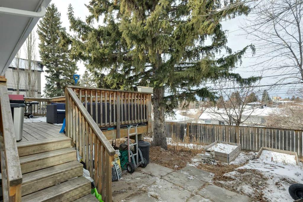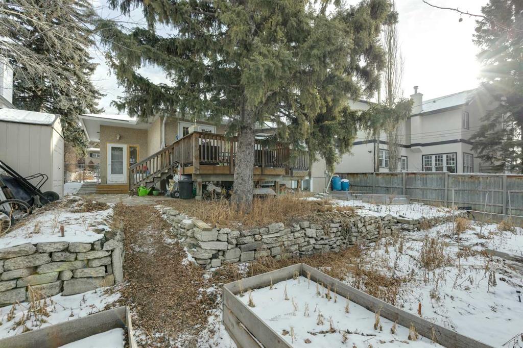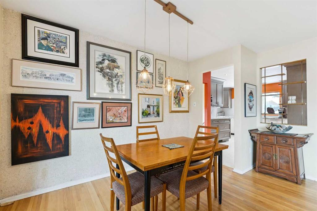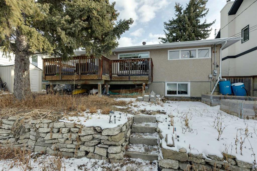 Set on a quiet dead end street in the highly sought-after community of Collingwood, this well-maintained bungalow offers an exceptional opportunity for first-time buyers, investors or those looking to secure a large inner-city lot with long-term potential. A massive 55′ x 100′ parcel with a west-facing backyard creates space to grow, garden, relax or reimagine future possibilities, while mature trees and established landscaping provide privacy and a peaceful outdoor setting. Natural light fills the main level where hardwood flooring, updated lighting and a functional layout support everyday living and easy entertaining. The partially upgraded kitchen blends classic character with modern touches through 2-tone cabinetry, updated backsplash, improved lighting and a large window, making daily routines feel bright and connected to the outdoors. An inviting living room enjoys an oversized bay window with calming backyard views, while the adjacent dining area allows for comfortable gatherings and family meals. 3 well-proportioned bedrooms are thoughtfully arranged on the main level alongside an updated 4-piece bathroom, offering convenience for families and guests alike. Downstairs, a generous family room creates flexible space for movie nights, games or hobbies, complemented by a 4th bedroom and a beautifully updated 4-piece bathroom featuring an oversized shower and dual sink vanity for added functionality. Recent upgrades including a newer furnace, newer roof and upgraded electrical provide peace of mind and improve long-term efficiency. Outdoor living is anchored by a large rear deck ideal for barbequing and unwinding in the evening sun, while rock retaining walls, garden areas and mature trees enhance both usability and character. An excellent location places everyday amenities within easy reach, with walking distance access to multiple schools, nearby green spaces and pathways, and quick connections to Confederation Park, Nose Hill Park and the Winter Club for year-round recreation. Proximity to SAIT, the University of Calgary, restaurants, retail options, the LRT station and downtown supports an easy commute and an active urban lifestyle, while a nearby off-leash dog park and neighbourhood amenities add everyday convenience. This home delivers location, lot size and thoughtful updates in one of northwest Calgary’s most established communities.