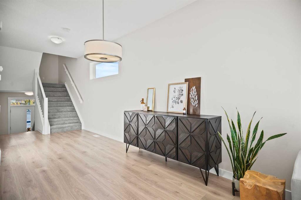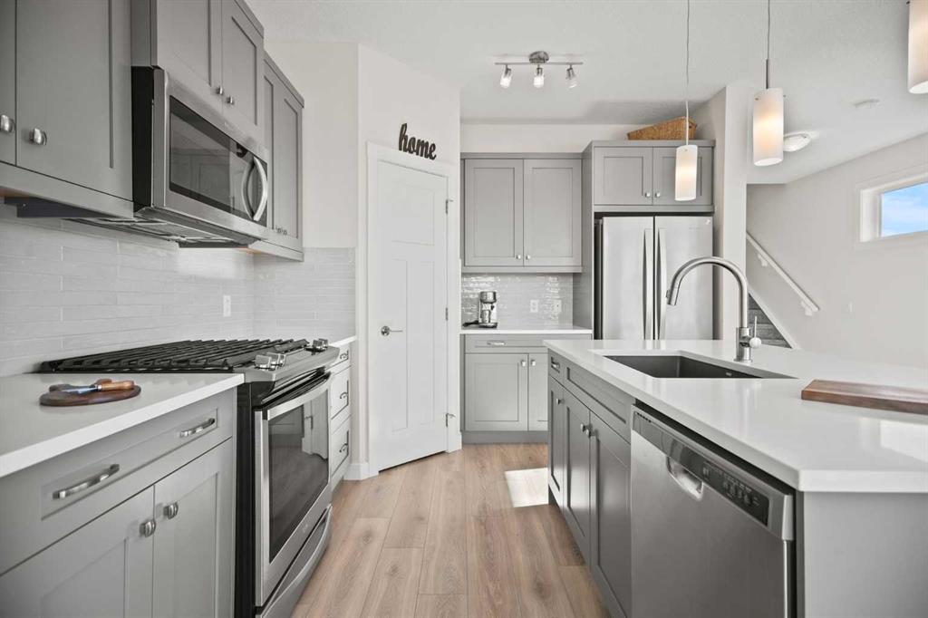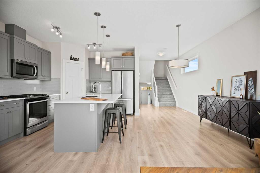 Welcome to this exceptional detached two-storey home in the prestigious community of Cranston Riverstone — where nature, privacy, and modern design come together beautifully. Backing west with breathtaking open views and no neighbours to the left, this home offers a rare sense of space and serenity, with scenic pathways just steps from your door. Inside, the open-concept main floor is finished with wide VINYL PLANK flooring, a striking electric FIREPLACE, and a chef-inspired kitchen featuring QUARTZ COUNTERTOPS, STAINLESS STEEL appliances, and a generous island perfect for gathering. Step out onto the WEST_FACING REAR DECK and take in unforgettable sunsets over the natural landscape — a view that truly sets this home apart. Upstairs, the thoughtfully designed layout places the primary bedroom just six steps above the main level, creating a private retreat separated from the two rear children’s bedrooms — ideal for both family living and quiet relaxation. The fully developed walkout basement extends your living space beautifully, perfect for entertaining, a home gym, or media room. Fully landscaped yard with FIREPIT and FENCED YARD. Complete with an EPOXY FINISHED FLOOR in garage and meticulous attention to detail throughout, this home is truly one of a kind. A rare opportunity to own a showstopper property with unmatched views in one of Calgary’s most desirable riverfront communities.