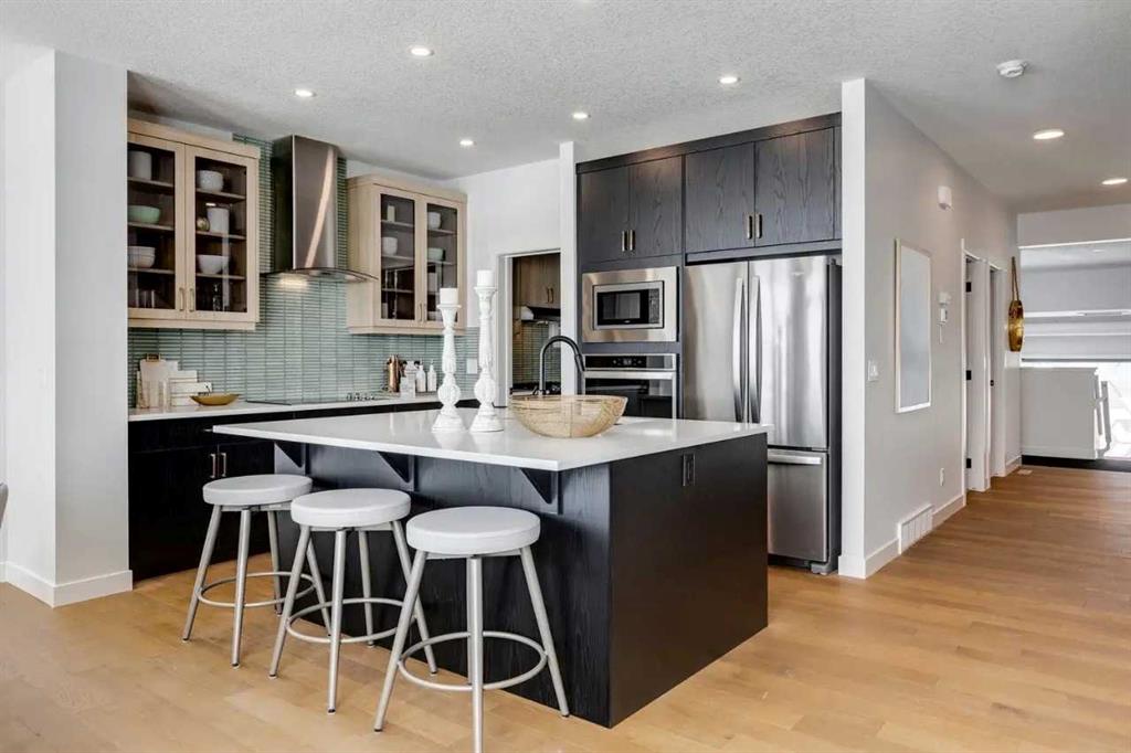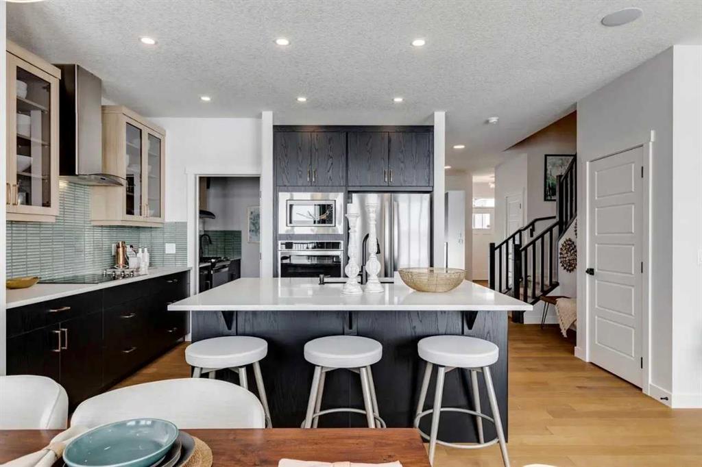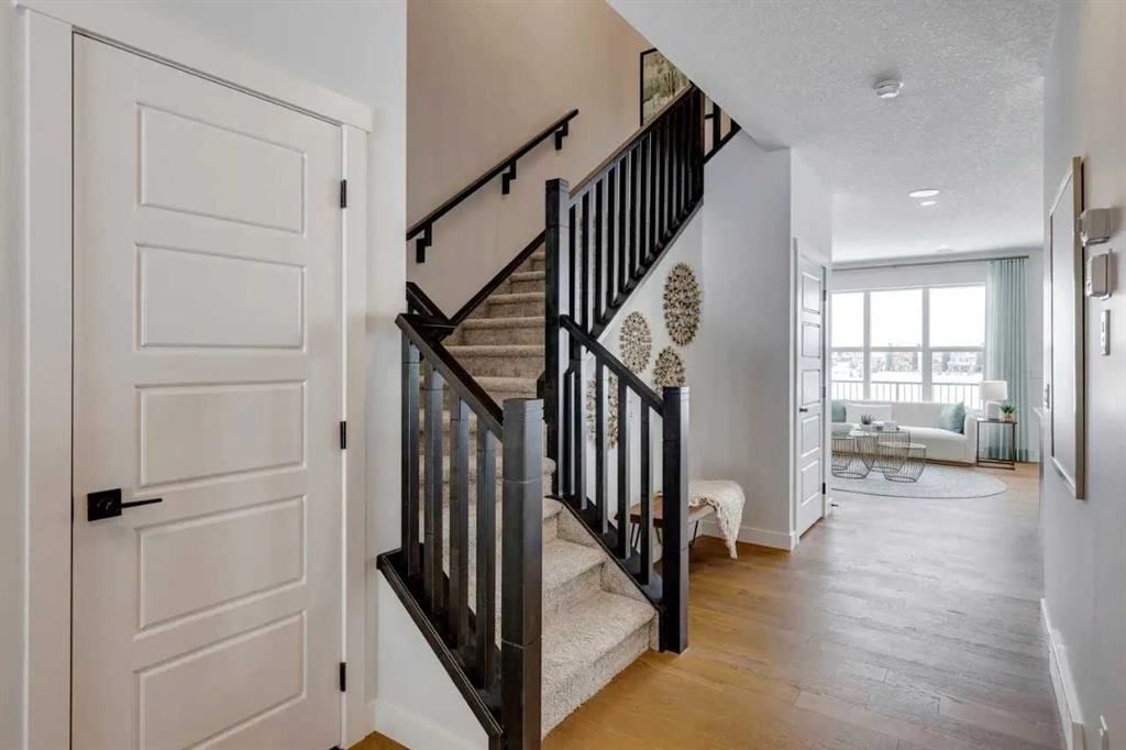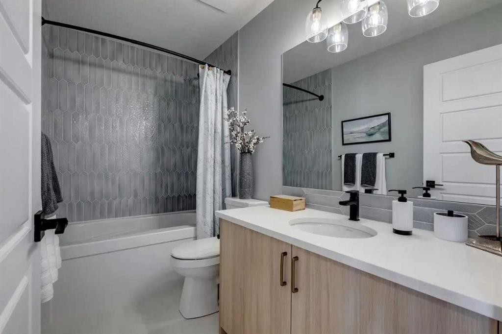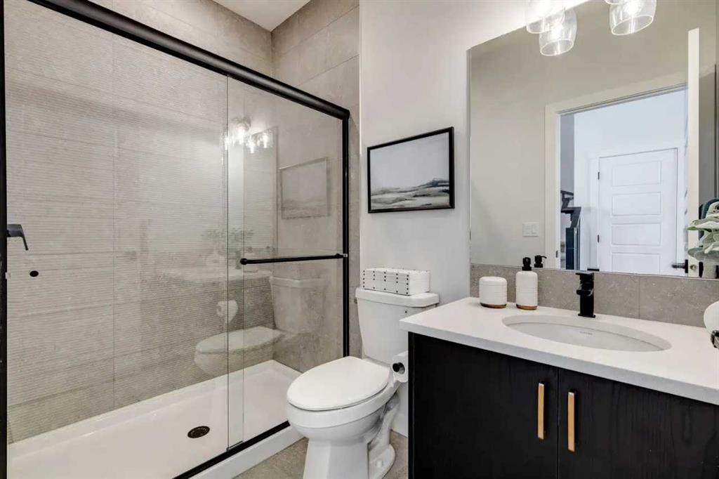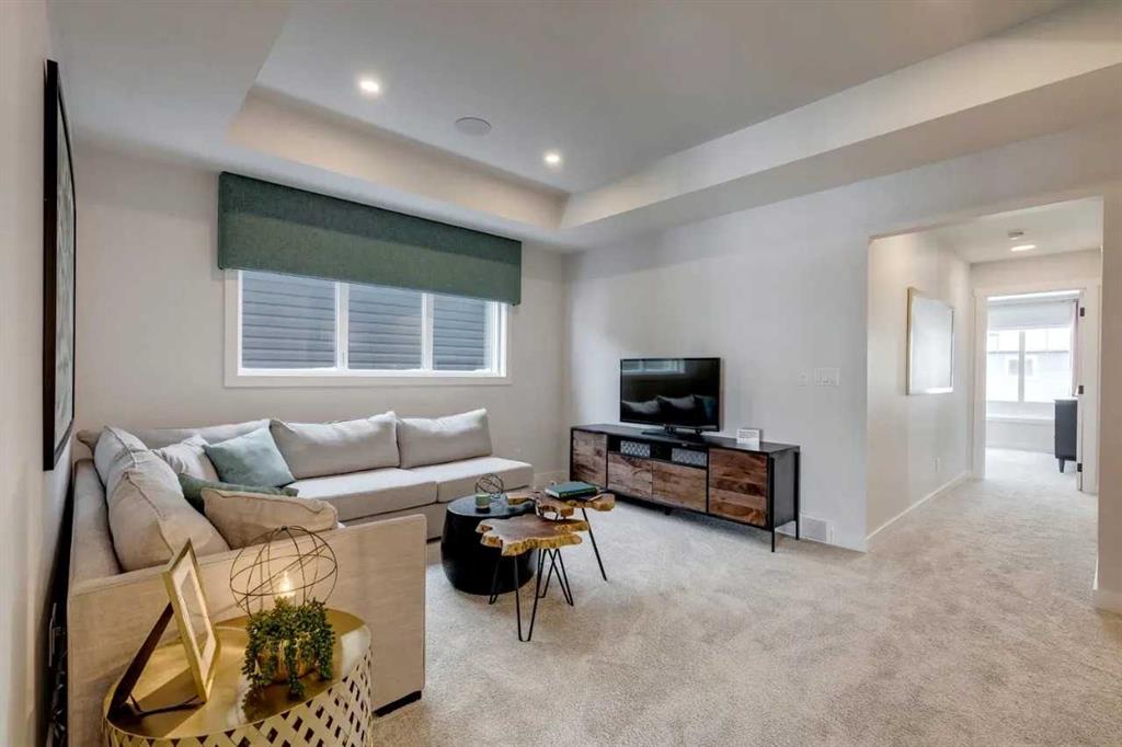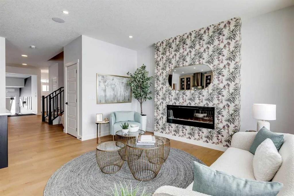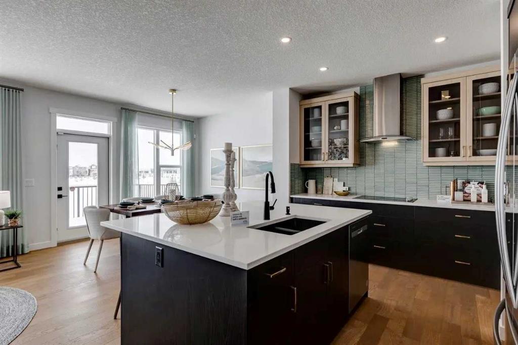 Located in the vibrant Southwest community of Pine Creek, this thoughtfully designed home offers flexible living and is set up for a future two-bedroom secondary suite in the basement, complete with a separate side entrance. The upper level features three bedrooms and a central bonus room, providing ample space for family living. On the main floor, a bedroom and full bathroom add convenience and versatility. The kitchen is equipped with a gas range cooktop, hood fan, and a large island, while the great room includes an electric fireplace feature wall. A well-rounded home suited for multi-generational living or future rental income potential. Photos are representative.
