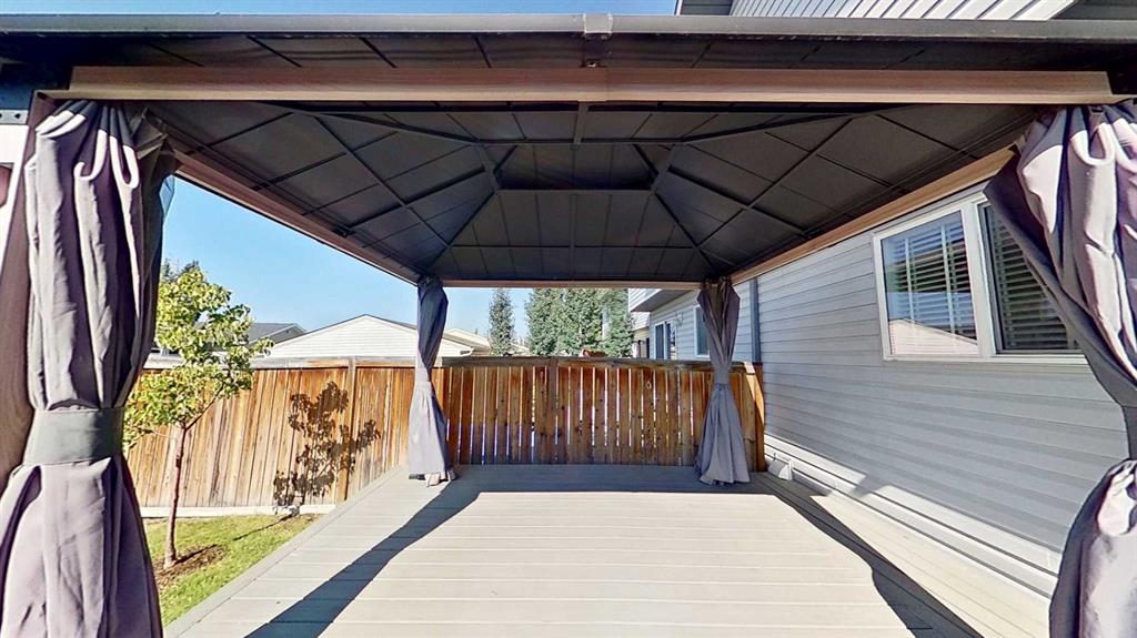 Just off the kitchen, a convenient mudroom and 2-piece bath lead to a sun-drenched west-facing backyard. Step outside to enjoy the oversized deck, complete with a charming gazebo – ideal for summer BBQs, evening drinks, or soaking up the afternoon sun. The backyard also features a side entrance and backs onto a paved alley, making winter snow removal a breeze.