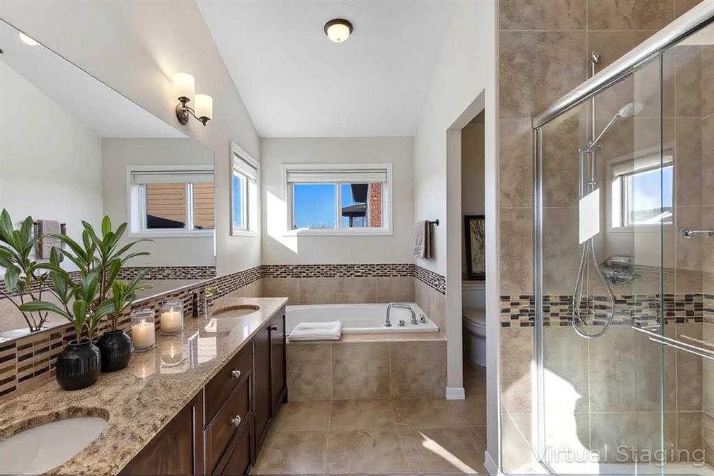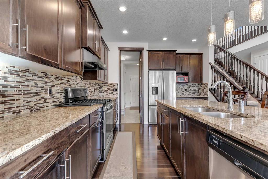 Welcome to 63 Panton View-one of the newer homes built in Panorama Hills (2014) located in a prime location close to schools, shopping, parks and the Ravine Pathway. The original owner has beautifully maintained this home that offers the perfect blend of style, comfort and functionality with over 2900 sf of developed living space. The main floor features 9 ft ceilings, gleaming hardwood floors and a bright open concept design with a large kitchen with granite countertops, stainless steel appliances including a gas stove and high power range hood fan, a large island, a walk through pantry and plenty of cabinet space. The living room and dining area are perfect for entertaining and have the patio doors that lead out to nice sized deck perfect for enjoying warm evenings. Both the front door foyer and the entrance from the garage have large closets to accomadate your outdoor coats and shoes. The impressive open riser staircase leads upstairs to bright vaulted ceilings with a skylight, hardwood floors and a bonus room with a separate area on the other side that can be used for a study area or small office. There are 3 bedrooms including a spacious master with a 5 piece ensuite and large walk in closet. Upstairs also has another 4 piece bathroom and laundry room. The basement with separate walk up entrance has impressive 9 foot ceilings and has been fully developed with a large family room, a 4th bedroom and another 4 piece bath providing endless possibilities for entertaining or extended family living. Other features include A/C, water softener, extra shelving and new roof shingles installed in 2025. Location is on quiet street steps from the park and walking paths, close to transit, schools, shopping and amenities and has quick access to Stoney Trail and other major commuting routes. This move in ready home offers pride of ownership and exceptional value in one of Calgarys most established and sought after communities!