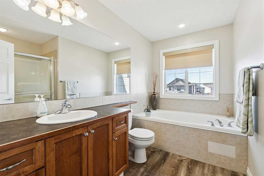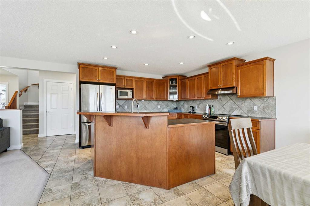 Bright, open two-story home featuring neutral finishes, air conditioning, and a fully finished walkout basement with Illegal suite. The main floor offers a functional kitchen with good natural light and an efficient layout, flowing into the main living areas. Upstairs includes a versatile bonus room, providing additional space for a family room, office, or play area. The primary bedroom features a 4-piece ensuite with durable vinyl plank flooring. Additional highlights include a Kinetico water softener system and a hot water heater replaced in 2018. A practical home with thoughtful upgrades.