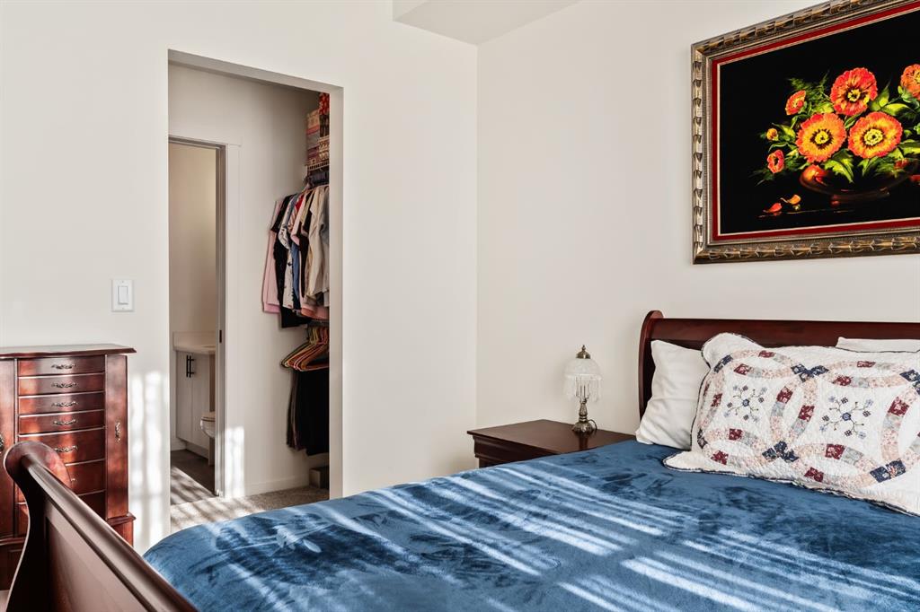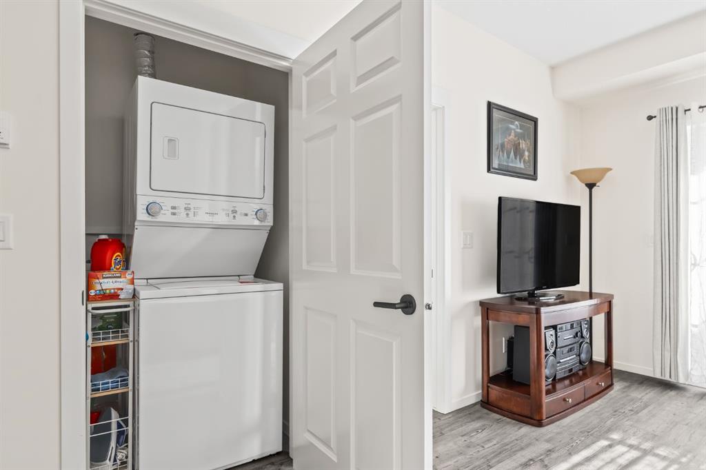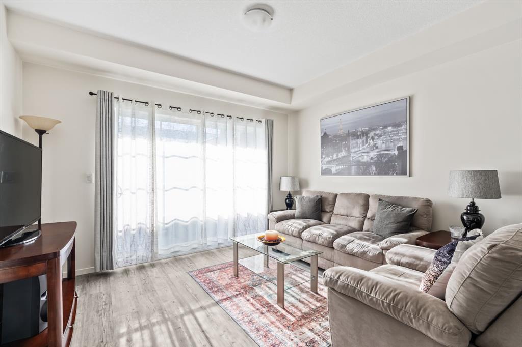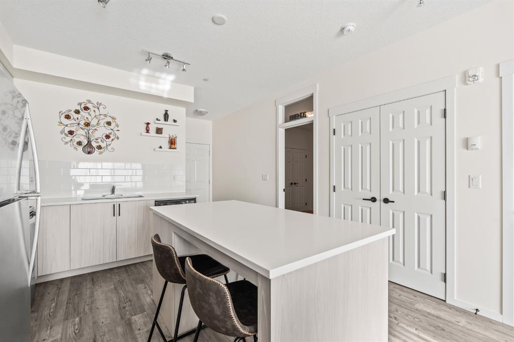 Welcome to this beautifully designed third floor condo in the sought-after community of Legacy. Boasting 752 square feet of modern, open-concept living space, this 2-bedroom, 2-bathroom unit blends style and functionality for comfortable everyday living. Step inside and be greeted by a bright and spacious front living room with oversized, south facing sliding patio doors that flood the space with natural light and lead to your private balcony the perfect spot to enjoy your morning coffee or unwind in the evening. At the heart of the home is a gorgeous kitchen that will inspire any home chef, featuring stainless steel appliances, quartz countertops, a designer tile backsplash and an abundance of cabinetry, all centred around a large central island ideal for casual dining and entertaining. The luxury vinyl plank flooring throughout the main living areas offers both durability and style. Retreat to the large primary bedroom, complete with a walkthrough closet and a private ensuite featuring a stand-up shower. The second bedroom is versatile and would make a fantastic home office, guest room, or workout space. Additional highlights include one titled parking stall, a separate storage locker and in-suite laundry for added convenience. Located in the vibrant and growing community of Legacy, you’ll enjoy quick access to a variety of nearby amenities including shops, restaurants, walking paths, playgrounds, and transit options. Families will appreciate the close proximity to All Saints High School, while commuters will benefit from easy access to major roadways. Don’t miss this opportunity to own a stunning top-floor unit in one of Calgary’s most desirable neighbourhoods.