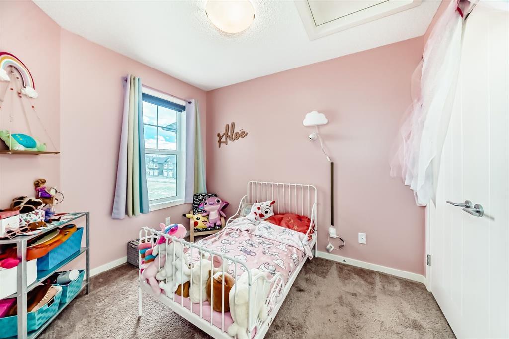 Upstairs, you’ll find two bedrooms and a full bathroom—ideal for kids, guests, or a home office. Continue up to your private retreat: a top-floor primary suite complete with a walk-in closet, full ensuite, and those signature mountain views greeting you each morning. Upper-floor laundry adds convenience with room for built-in storage space.