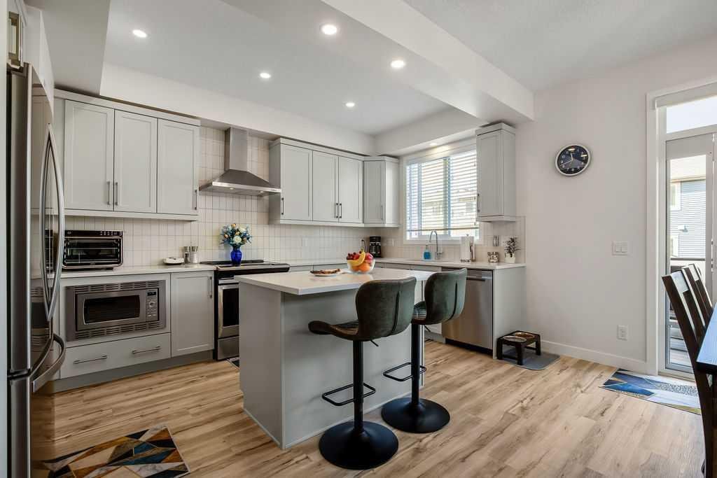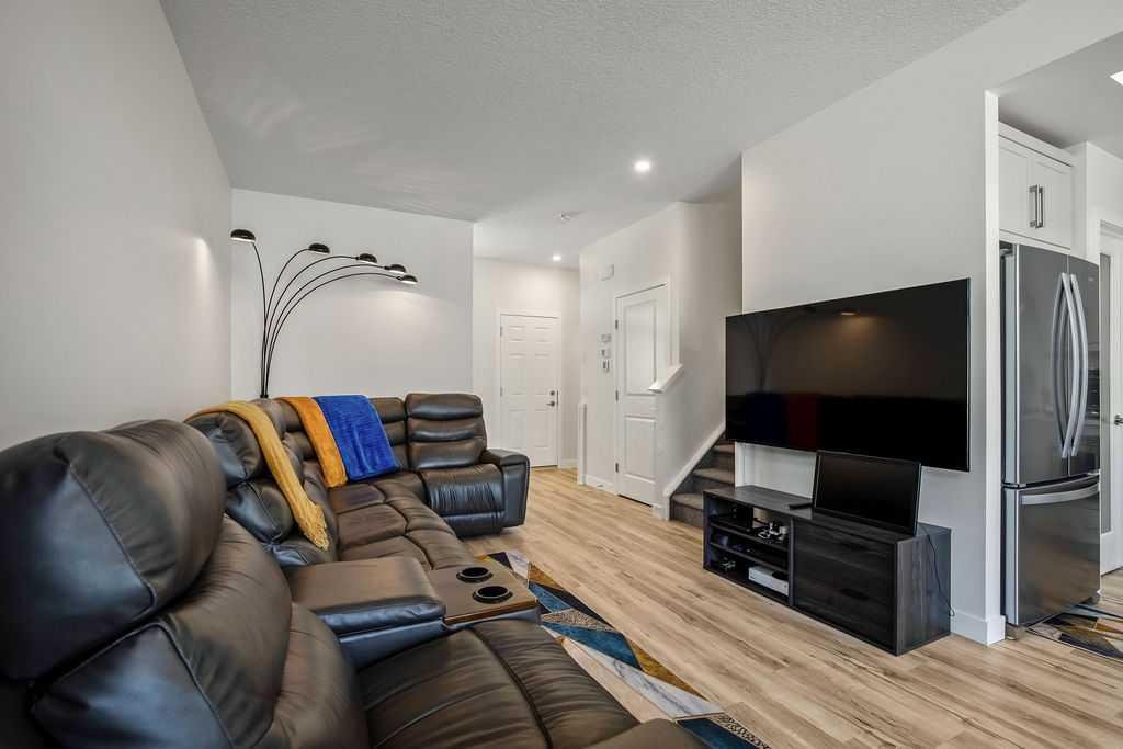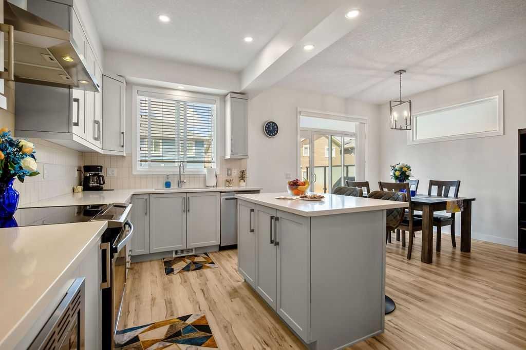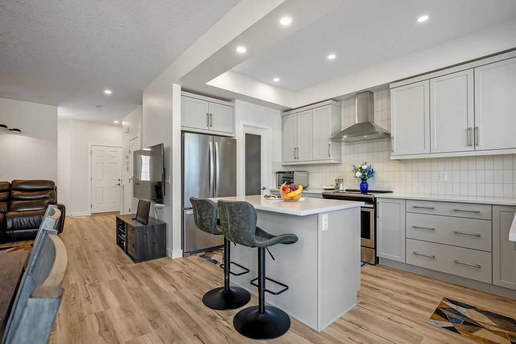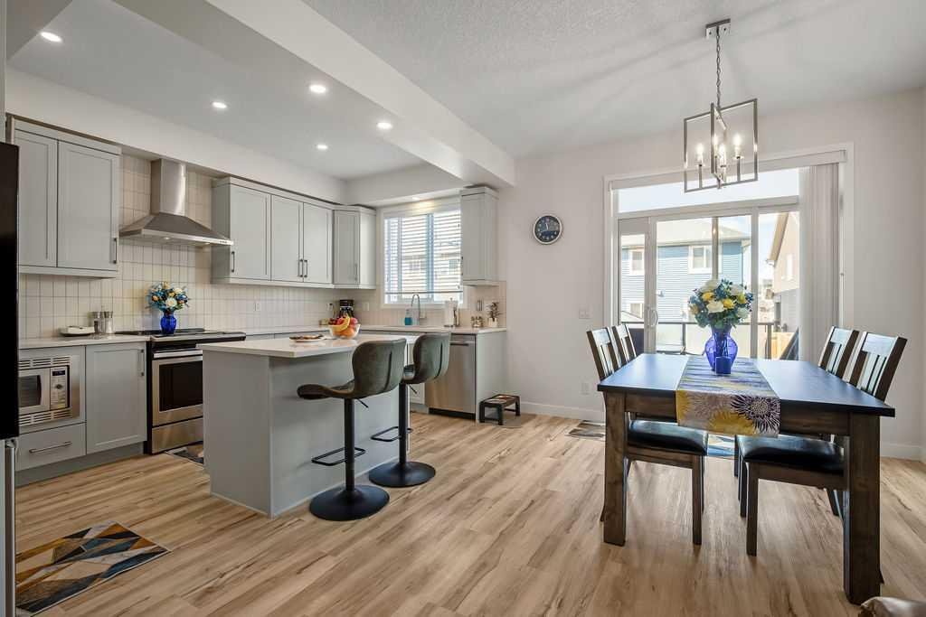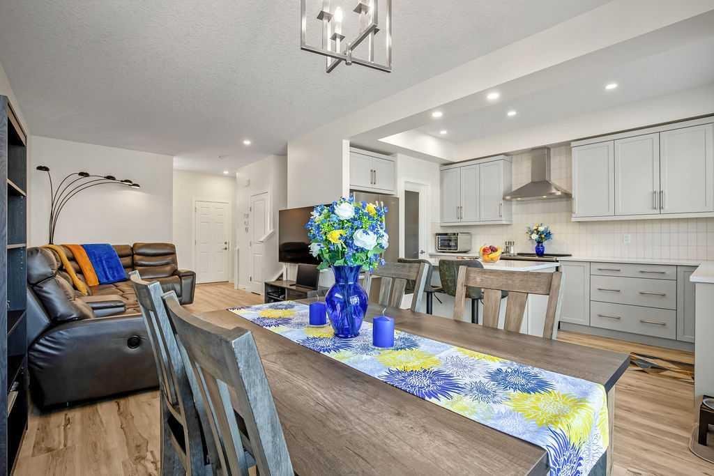 Stylish, upgraded, and move-in ready, this half duplex Jayman Aurora model in King’s Heights offers 2,012 square feet of fully developed space and 1,384 square feet above ground with 3 bedrooms, 4 bathrooms and more all in one of Airdrie’s most desirable communities. The main floor features a bright, open concept layout with Luxury Vinyl Plank flooring and a spacious living room that flows seamlessly into the dining area and kitchen. The stylish kitchen is complete with quartz countertops, a central island with flush eating bar, upgraded lighting, designer and a full stainless steel appliance package that include a French door fridge with icemaker, glass top stove, built-in dishwasher, designer hood fan & built-in microwave. Upstairs, you’ll find 3 bedrooms, including a primary retreat with a large walk-in closet and private 4 pc. ensuite with dual vanities, along with the added convenience of upper-level laundry. The fully finished basement offers additional flexibility, featuring a large family room, flex space, and 2 piece bathroom. The flex room could easily be converted into a fourth bedroom with the simple addition of a door, making this home ideal for growing families or guests. Step outside to your low-maintenance backyard oasis, thoughtfully upgraded with a composite deck, BBQ gas Line, enclosed fencing, hot tub (Master Spa Twilight Series 8.25 – seats 7), gazebo, and storage shed—perfect for relaxing with minimal upkeep. Additional upgrades include central air conditioning and a single attached garage, along with a functional front foyer. Located close to parks, schools, shopping, and pathways, this home offers incredible value in a family-friendly community.