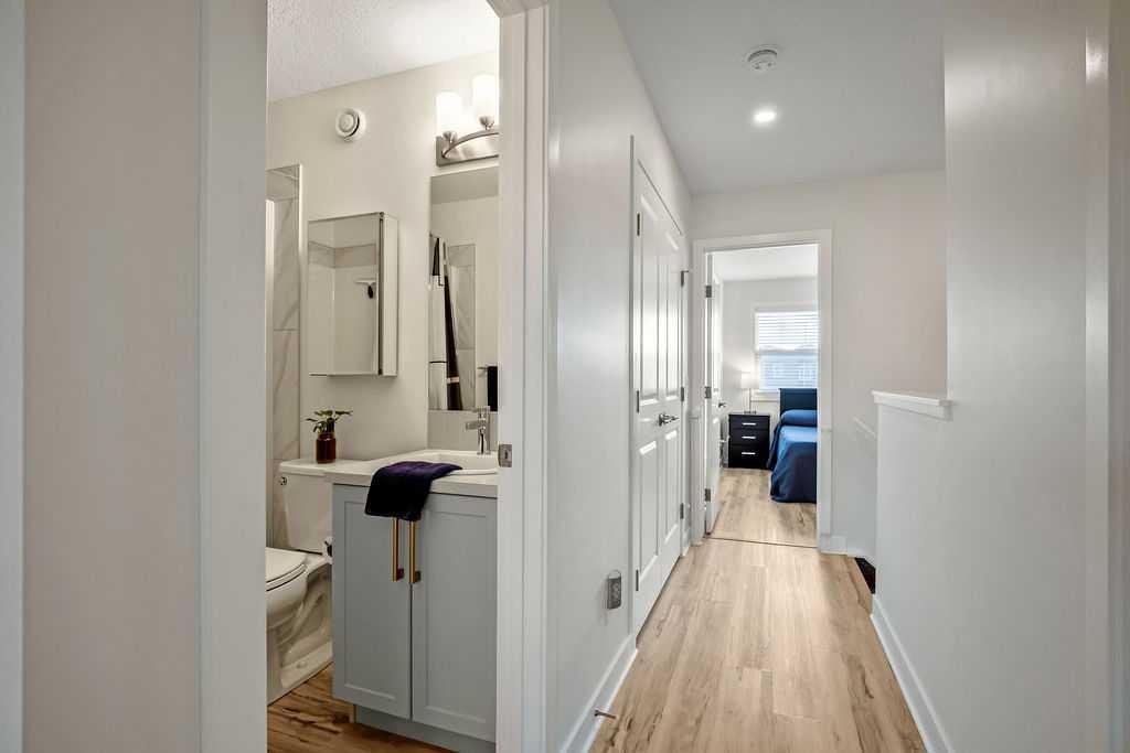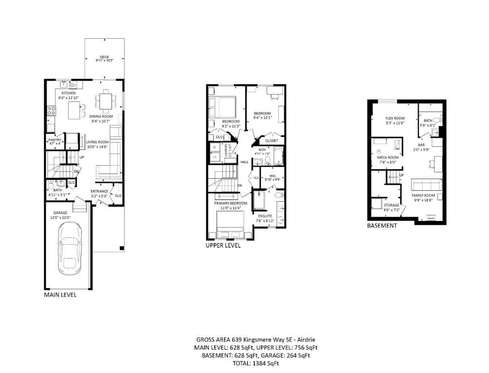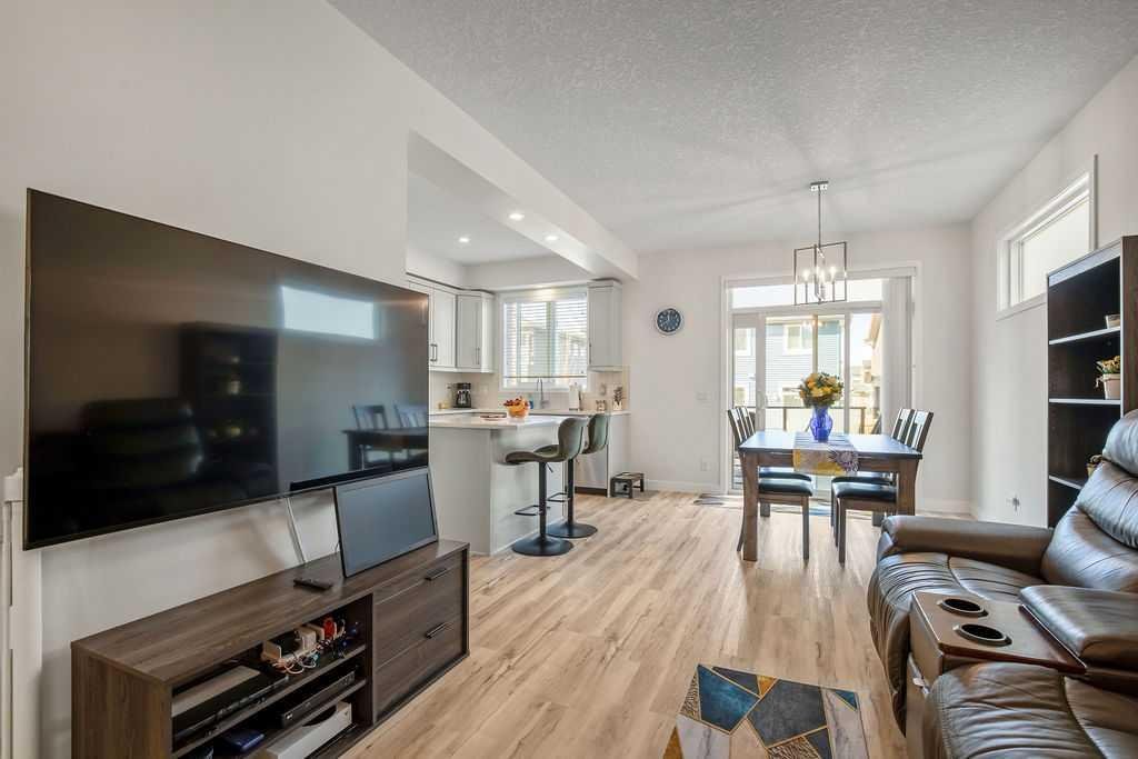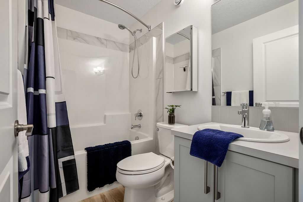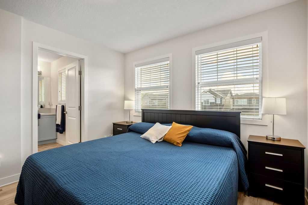 Stylish, upgraded, and move-in ready, this half duplex Jayman Aurora model in King’s Heights offers 2,012 square feet of fully developed space and 1,384 square feet above ground with 3 bedrooms, 4 bathrooms and more all in one of Airdrie’s most desirable communities. The main floor features a bright, open concept layout with Luxury Vinyl Plank flooring and a spacious living room that flows seamlessly into the dining area and kitchen. The stylish kitchen is complete with quartz countertops, a central island with flush eating bar, upgraded lighting, designer and a full stainless steel appliance package that include a French door fridge with icemaker, glass top stove, built-in dishwasher, designer hood fan & built-in microwave. Upstairs, you’ll find 3 bedrooms, including a primary retreat with a large walk-in closet and private 4 pc. ensuite with dual vanities, along with the added convenience of upper-level laundry. The fully finished basement offers additional flexibility, featuring a large family room, flex space, and 2 piece bathroom. The flex room could easily be converted into a fourth bedroom with the simple addition of a door, making this home ideal for growing families or guests. Step outside to your low-maintenance backyard oasis, thoughtfully upgraded with a composite deck, BBQ gas Line, enclosed fencing, hot tub (Master Spa Twilight Series 8.25 – seats 7), gazebo, and storage shed—perfect for relaxing with minimal upkeep. Additional upgrades include central air conditioning and a single attached garage, along with a functional front foyer. Located close to parks, schools, shopping, and pathways, this home offers incredible value in a family-friendly community.
