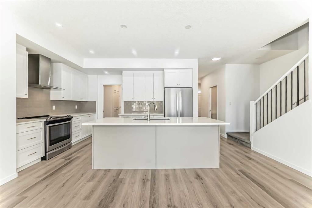 Discover the ultimate lake lifestyle in this stunning home, located on a quiet street in the award-winning community of Mahogany. Spanning over 2,000 square feet of bright and modern living space, this residence shows numerous upgrades throughout. The open-concept main floor creates an abundant feeling of space, anchored by a gourmet kitchen featuring a massive quartz island, premium stainless steel appliances, and extra cupboard storage. Upstairs, the master retreat serves as a private oasis with a five-piece ensuite, dual vanities, and a massive walk-in closet, complemented by two additional large bedrooms and a convenient laundry area. The functional design extends to the exterior and lower level, offering an attached double garage and a west-facing backyard complete with a large deck. A rare separate entrance to the basement provides incredible potential for a future development. This home is fully equipped with a high-efficiency furnace and hot water tank to ensure year-round comfort. Situated just minutes from the main beach, local shops, and walking trails, this property offers a turnkey opportunity to join Calgary’s premier lake community.