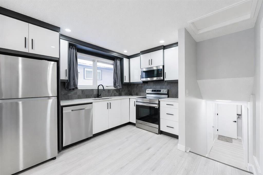 Fully renovated 3-bedroom 3-level split in Pineridge with concrete driveway, oversized detached garage, and RV parking. Features include new flooring, matte black finishes, modern lighting, and a stylish kitchen with new stainless steel appliances and white quartz countertops. Offers over 1,170 sq ft of living space with 2 bedrooms up, 1 bedroom down, ample storage, and convenient main-floor access to the driveway. Close to parks and schools.