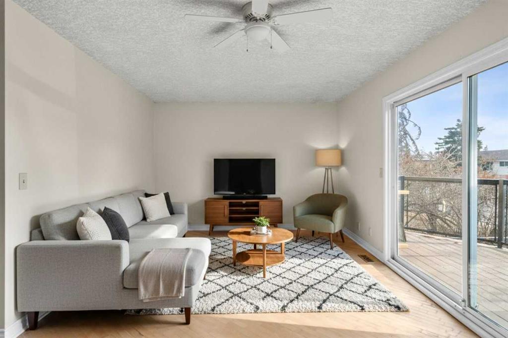 Semi detached unit, close to shopping, schools, bus, parks and Calgary Farmers Market. Primary with three piece ensuite. Total of four bedrooms and three bathrooms. Cozy wood burning fireplace in living room. South facing for plenty of sunlight. Large newer windows. Bi-level side entrance provides future potential for basement suite with City Approval. Roof on house and garage to be replaced by March 31/2026 weather permitting. Single detached garage. Quick possession.