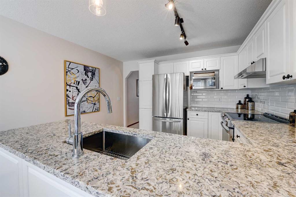 Exceptionally maintained and upgraded one-owner home offering nearly 2,500 sq. ft. of developed, functional living space. Pride of ownership is evident the moment you walk up to the front door with the exposed aggregate walks and professional landscaping. The layout of the home is very inviting with three spacious bedrooms on the main floor including a primary with four-piece ensuite bathroom. There is a bright and comfortable living room, a large dining room for entertaining and an upgraded kitchen with stainless appliances, lots of cabinets and quartz counter tops. From the kitchen you can step out to the beautiful deck that has frosted glass for privacy and a glamorous spiral staircase leading to the backyard. This is a fantastic space that makes you feel like you are amongst the trees and is everyone’s favorite spot for entertaining or lounging. The lower level of the home is a bright and sunny walk out and is finished to the same quality as the main level. There is a large entertainment area with an included pool table with accessories, a wet bar with live edge counter and custom tile backsplash and a cozy sitting area with a gas fireplace. The perfect area to relax while watching TV. The lower level also has another bedroom, great for older children or guests, an upgraded three-piece bathroom, a nice laundry room and a huge storage room. This home is situated in the highly desirable community of Signal hill, known for excellent schools, nearby playgrounds, parks, and extensive walking and biking paths. Enjoy mountain views and the convenience of being within walking distance to the Westhill shopping center, steps to transit, with easy access to downtown and the ring road to get west to the mountains quickly. The beautifully landscaped and private yard features mature trees, stunning perennial gardens, concrete edging, and a custom storage shed that matches the exterior of the home. This is an excellent property. Call today for your private viewing!