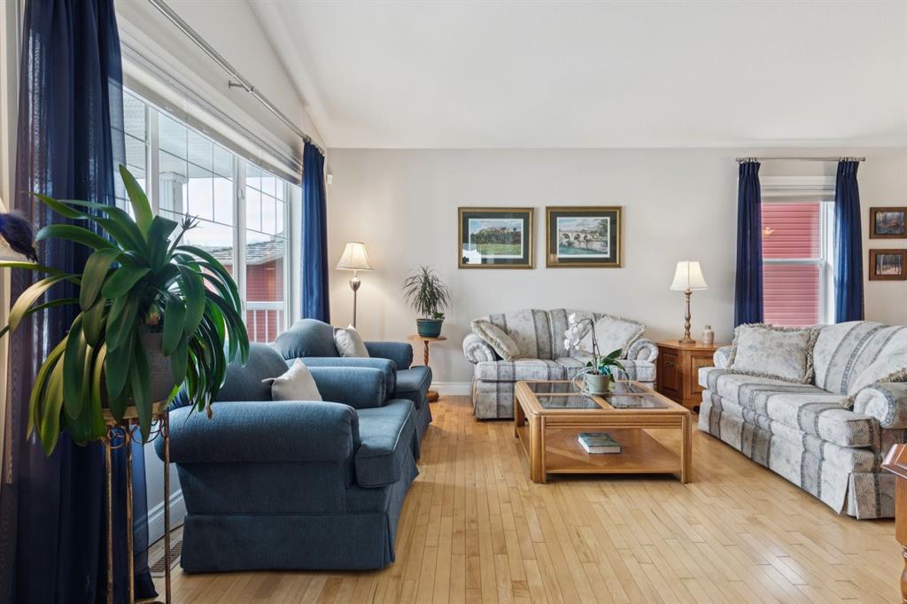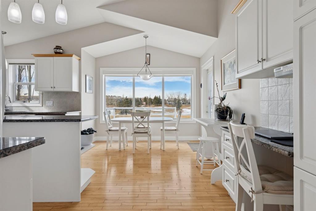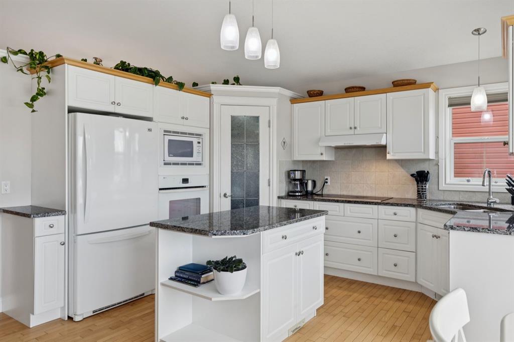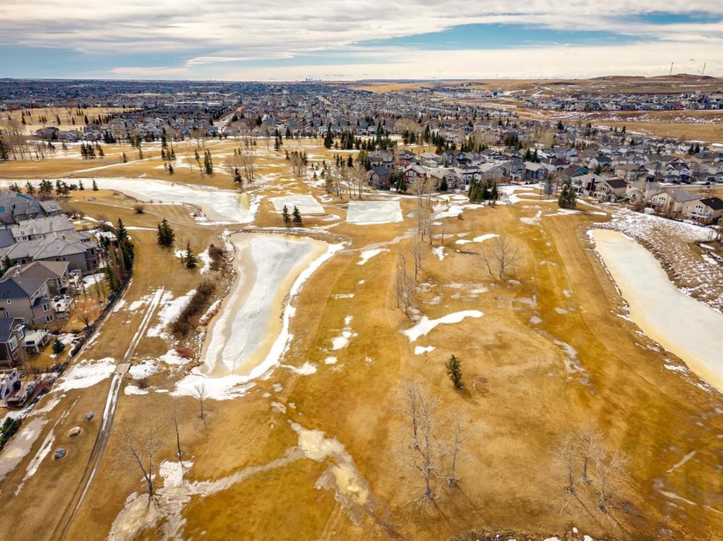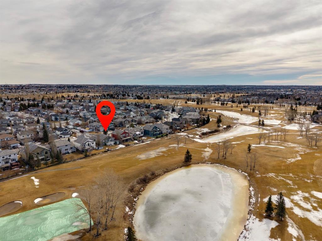 Welcome to a rare opportunity in the highly sought-after Woodside community—this original-owner bungalow, custom built by McKee Homes, offers an exceptional combination of quality, comfort, and an unbeatable location backing directly onto the picturesque Woodside Golf Course. Perfectly positioned on a quiet, low-traffic cul-de-sac, this home captures stunning west-facing views over two tranquil ponds and rolling greens, with no neighbours behind. Enjoy the peaceful setting year-round, with only seasonal golf activity for approximately six months of the year. Whether you’re relaxing or entertaining, the elevated balcony deck is a standout feature—complete with a gas line for your BBQ, clear glass wind panels to preserve the views, and a power awning with remote for added comfort. Inside, the home boasts a bright and open layout enhanced by vaulted ceilings and an abundance of windows that flood the space with natural light. The kitchen is thoughtfully designed with granite countertops, built-in appliances, a central island with vacuum kick plate, and a cozy breakfast nook—all overlooking the golf course. Rich hardwood flooring flows throughout the main level, adding warmth and elegance. The spacious primary retreat offers serene views, a walk-in closet, and a full en suite. A second bedroom on the main level provides flexibility as a guest room, den, or home office—also enjoying those incredible west views. The main floor is completed by a large and functional laundry/mudroom with pocket doors, allowing you to keep everyday life neatly tucked away. The professionally finished basement features 9’ ceilings, upgraded carpet, and an inviting gas fireplace with a built-in entertainment unit. Two additional bedrooms with sunshine windows, ample storage, and a full bathroom make this level perfect for family or guests. Additional highlights include triple pane windows on the west-facing side for enhanced efficiency, double pane windows elsewhere, central vacuum system, a full blinds package, and a builder-finished basement. The oversized attached garage (25’5” x 23’) easily accommodates a full-sized truck, while the backyard offers plenty of space along with a storage shed. The front yard showcases a beautifully designed rock garden filled with perennials that create stunning seasonal curb appeal, complemented by a welcoming front deck—perfect for enjoying your morning coffee. Homes of this caliber, in locations like this, rarely come to market. With pride of ownership evident throughout, a highly functional layout, and breathtaking views, this is your chance to secure a truly special property in one of Airdrie’s most desirable neighborhoods.