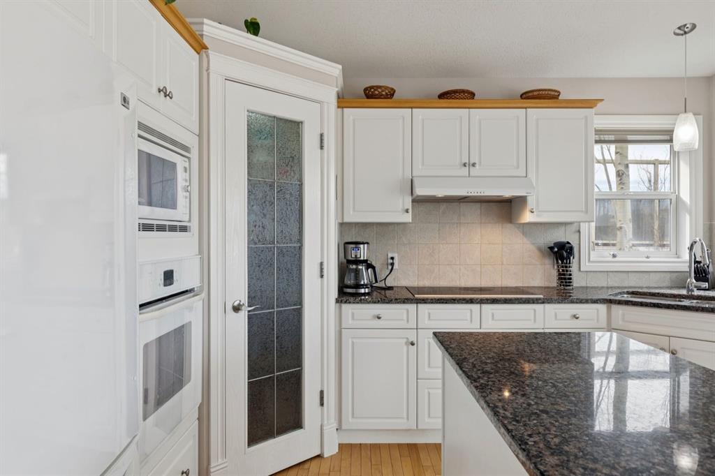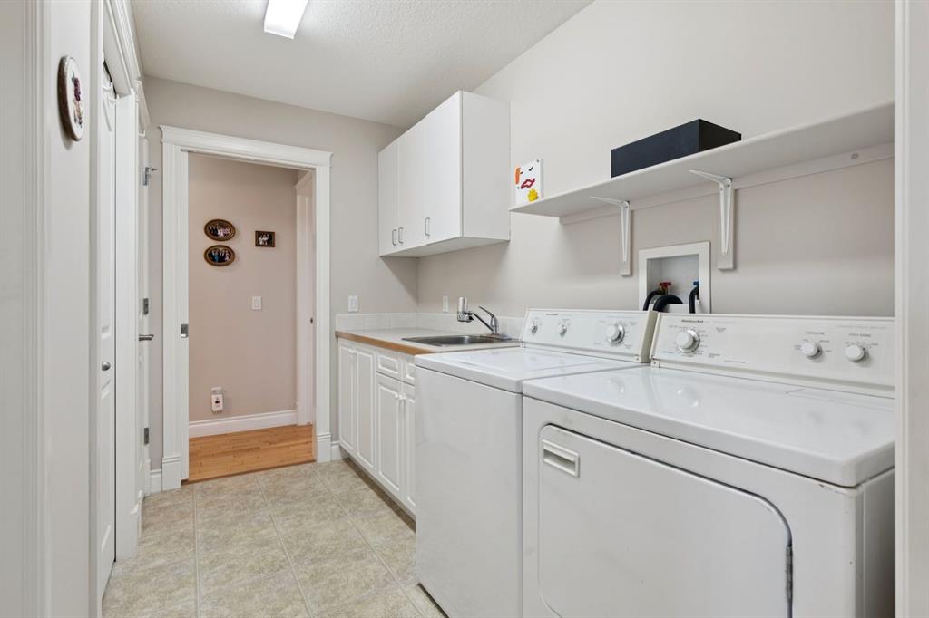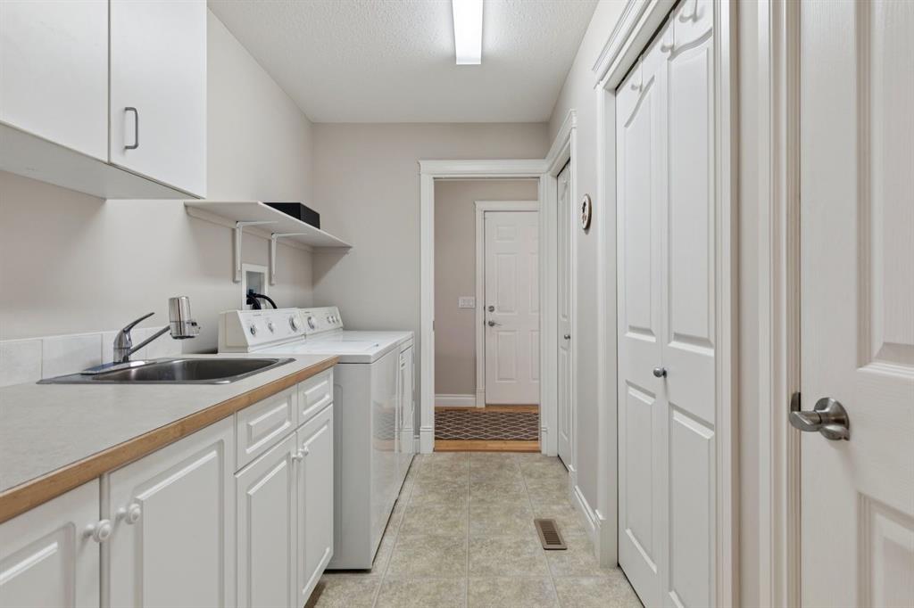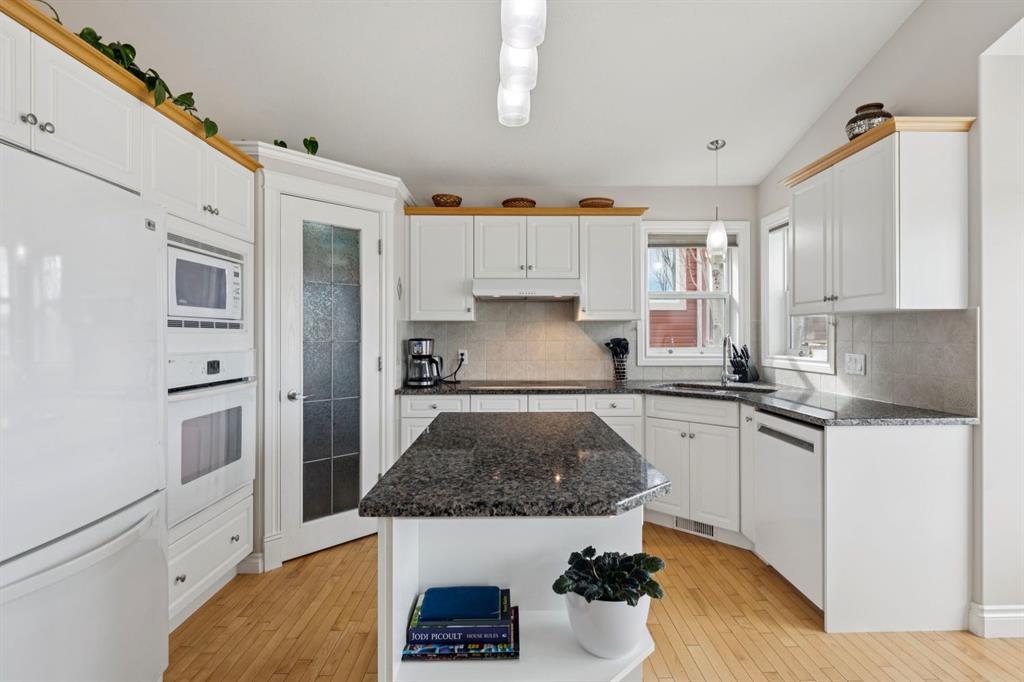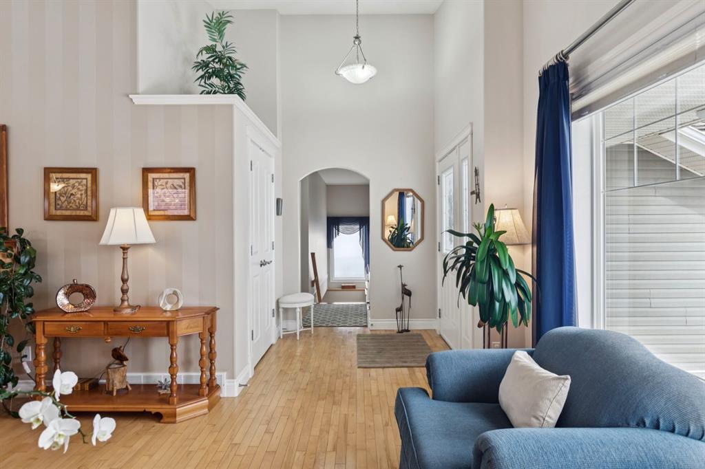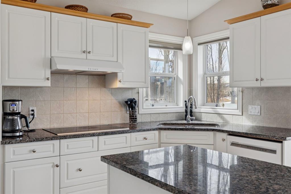Welcome to a rare opportunity in the highly sought-after Woodside community—this original-owner bungalow, custom built by McKee Homes, offers an exceptional combination of quality, comfort, and an unbeatable location backing directly onto the picturesque Woodside Golf Course. Perfectly positioned on a quiet, low-traffic cul-de-sac, this home captures stunning west-facing views over two tranquil ponds and rolling greens, with no neighbours behind. Enjoy the peaceful setting year-round, with only seasonal golf activity for approximately six months of the year. Whether you’re relaxing or entertaining, the elevated balcony deck is a standout feature—complete with a gas line for your BBQ, clear glass wind panels to preserve the views, and a power awning with remote for added comfort. Inside, the home boasts a bright and open layout enhanced by vaulted ceilings and an abundance of windows that flood the space with natural light. The kitchen is thoughtfully designed with granite countertops, built-in appliances, a central island with vacuum kick plate, and a cozy breakfast nook—all overlooking the golf course. Rich hardwood flooring flows throughout the main level, adding warmth and elegance. The spacious primary retreat offers serene views, a walk-in closet, and a full en suite. A second bedroom on the main level provides flexibility as a guest room, den, or home office—also enjoying those incredible west views. The main floor is completed by a large and functional laundry/mudroom with pocket doors, allowing you to keep everyday life neatly tucked away. The professionally finished basement features 9’ ceilings, upgraded carpet, and an inviting gas fireplace with a built-in entertainment unit. Two additional bedrooms with sunshine windows, ample storage, and a full bathroom make this level perfect for family or guests. Additional highlights include triple pane windows on the west-facing side for enhanced efficiency, double pane windows elsewhere, central vacuum system, a full blinds package, and a builder-finished basement. The oversized attached garage (25’5” x 23’) easily accommodates a full-sized truck, while the backyard offers plenty of space along with a storage shed. The front yard showcases a beautifully designed rock garden filled with perennials that create stunning seasonal curb appeal, complemented by a welcoming front deck—perfect for enjoying your morning coffee. Homes of this caliber, in locations like this, rarely come to market. With pride of ownership evident throughout, a highly functional layout, and breathtaking views, this is your chance to secure a truly special property in one of Airdrie’s most desirable neighborhoods.