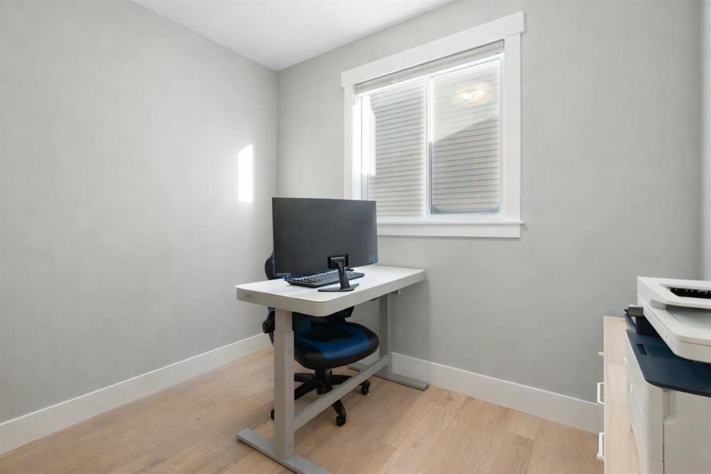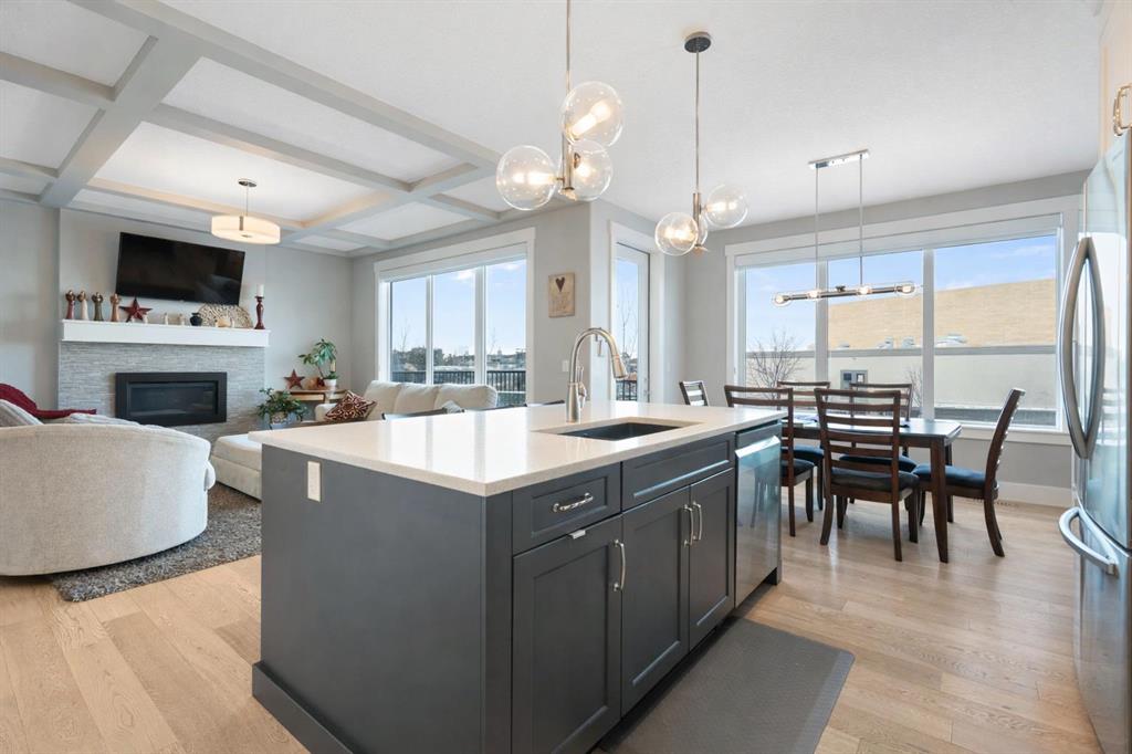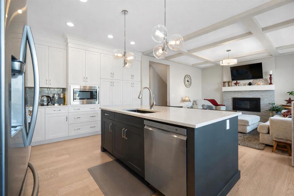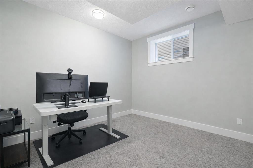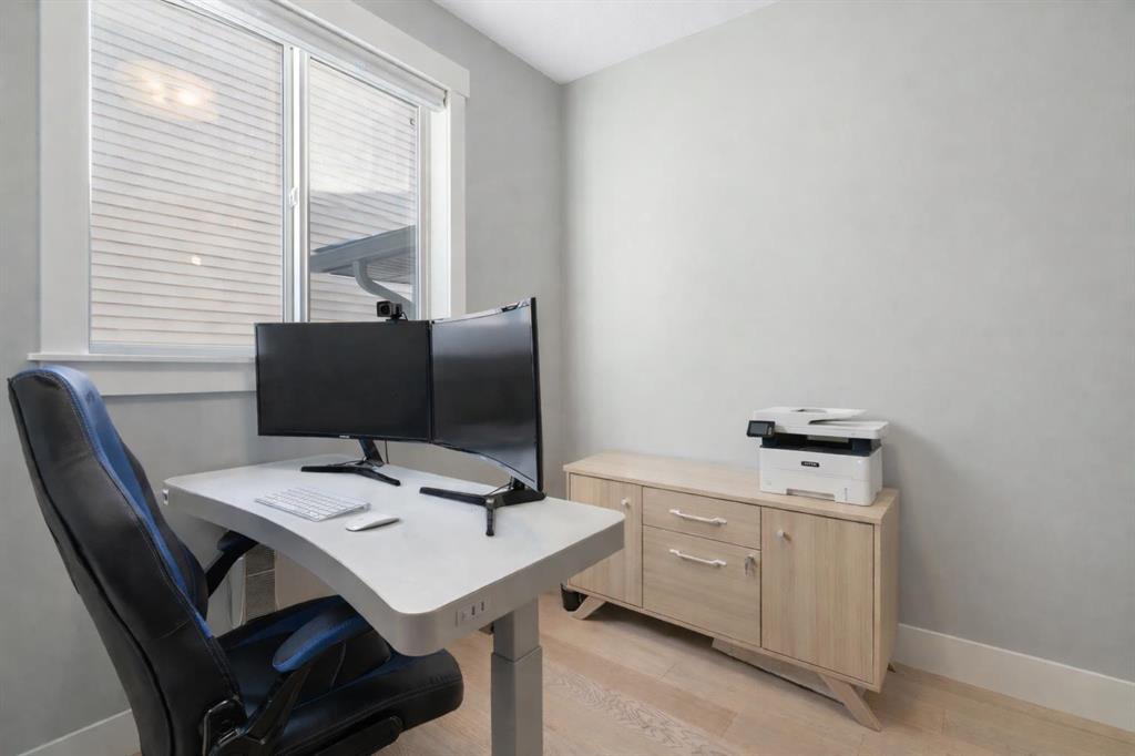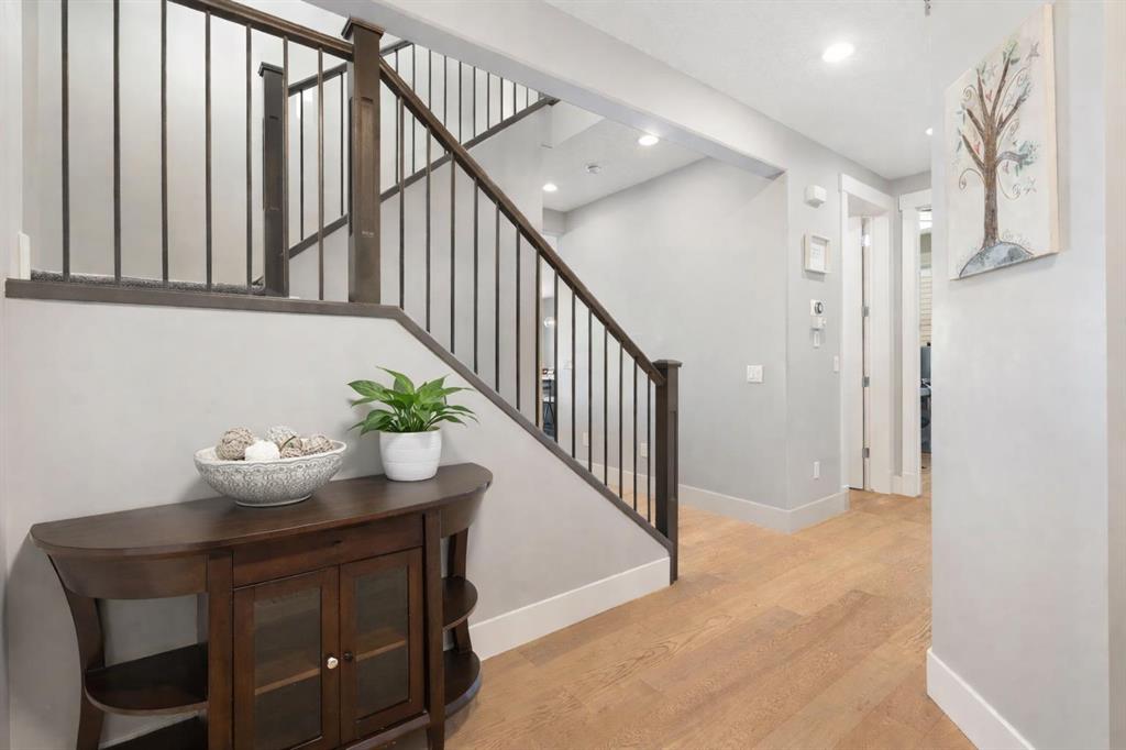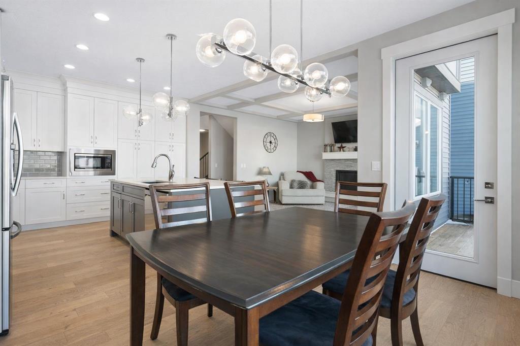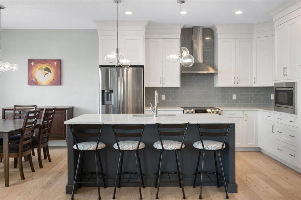 Welcome to a home that feels elevated from the very first step inside. Custom built by Harder Homes, this beautifully crafted two storey in Coopers Crossing offers over 3000 square feet of thoughtfully developed living space. With its distinctive exterior, sloped roof lines, and MASSIVE GARAGE, the curb appeal makes a strong first impression. Inside, the sense of space and intention continues. The main floor unfolds with a grand foyer that opens into a warm and welcoming great room, anchored by coffered ceilings and a GAS FIREPLACE that invites slow evenings and enjoyable gatherings. ENGINEERED HARDWOOD floors carry throughout, paired with 9′ CEILINGS and 8′ DOORS that add both height and presence. The kitchen is truly the heart of the home. Beautifully finished with ceiling height cabinetry, stainless steel appliances, and a generous center island, it offers exceptional storage and space to cook, host, & connect. The dining area sits just off the kitchen, filled with natural light and perfectly positioned for everyday meals or weekend entertaining. A dedicated MAIN FLOOR OFFICE creates a quiet place to work or study, tucked away yet still connected to the rhythm of the home. The mudroom leading to the garage is complete with built-ins and a charming barn door, keeping busy days organized. Every detail feels considered, right down to the Nest thermostat and the added AIR CONDITIONING (2022) for year round comfort. Upstairs, the layout is as functional as it is spacious. The primary suite feels like a true retreat, with room to unwind, a large WALK-IN CLOSET with custom built-ins, and a luxurious 5 piece ensuite featuring dual sinks, a deep soaker tub, & a spacious shower. Two additional bedrooms are generously sized and share a well appointed 5 piece bath with double sinks, ideal for growing families. The BONUS ROOM offers flexibility for movie nights or play space, complete with a rough in for speakers to elevate your home entertainment experience. An upgraded railing adds a refined architectural touch as you move between levels. The fully developed basement extends the living space even further, with a massive recreation and media area that easily adapts to your needs. A 4th bedroom, separate den and full 4 piece bathroom make it perfect for guests, teens, or multi generational living. Backing directly onto a school, the backyard setting offers both privacy and convenience, with no rear neighbours and quick access to green space and community pathways. Living in Coopers Crossing means being part of one of Airdrie’s most sought after neighbourhoods, known for parks, schools, and a strong sense of community. It is the kind of place where families put down roots and stay awhile. Book your private showing and experience it for yourself! *Some photos have been virtually staged*