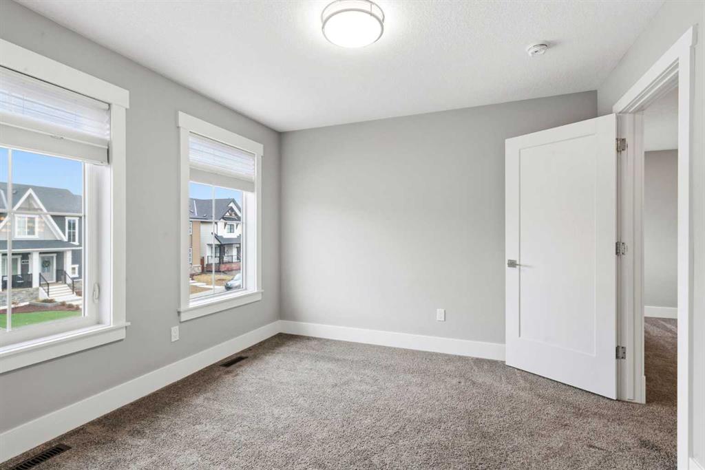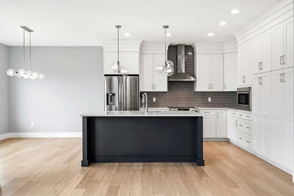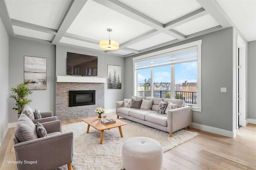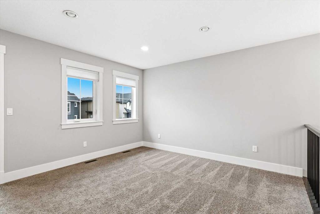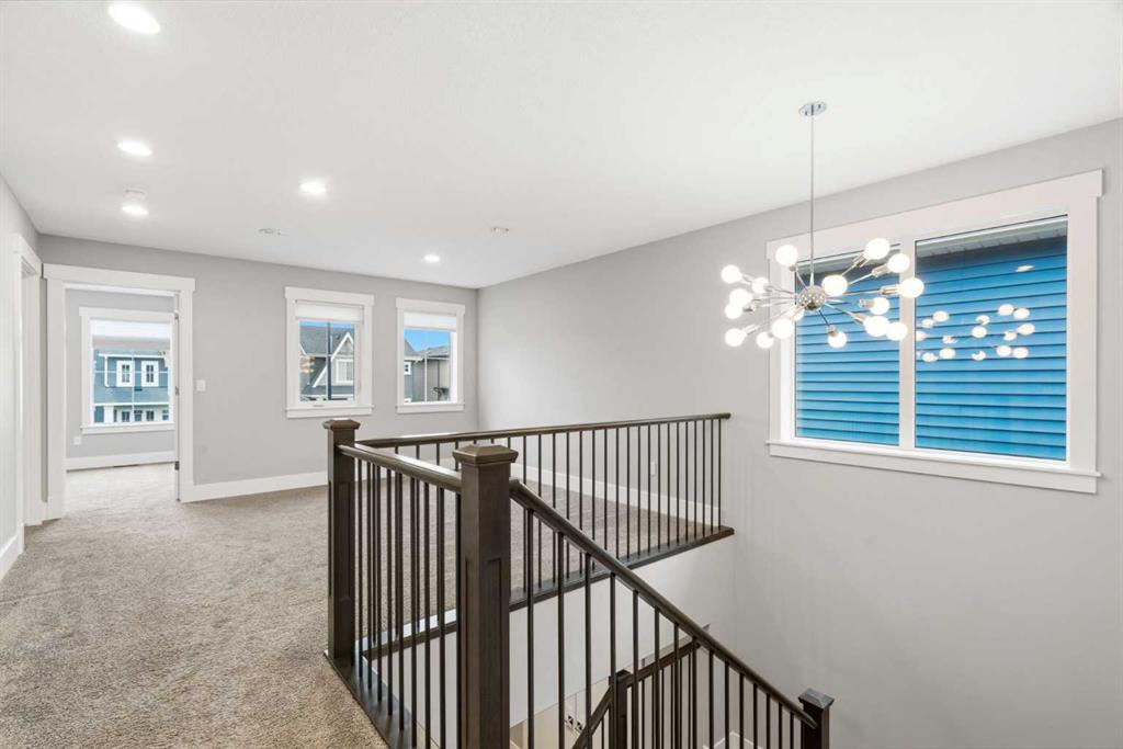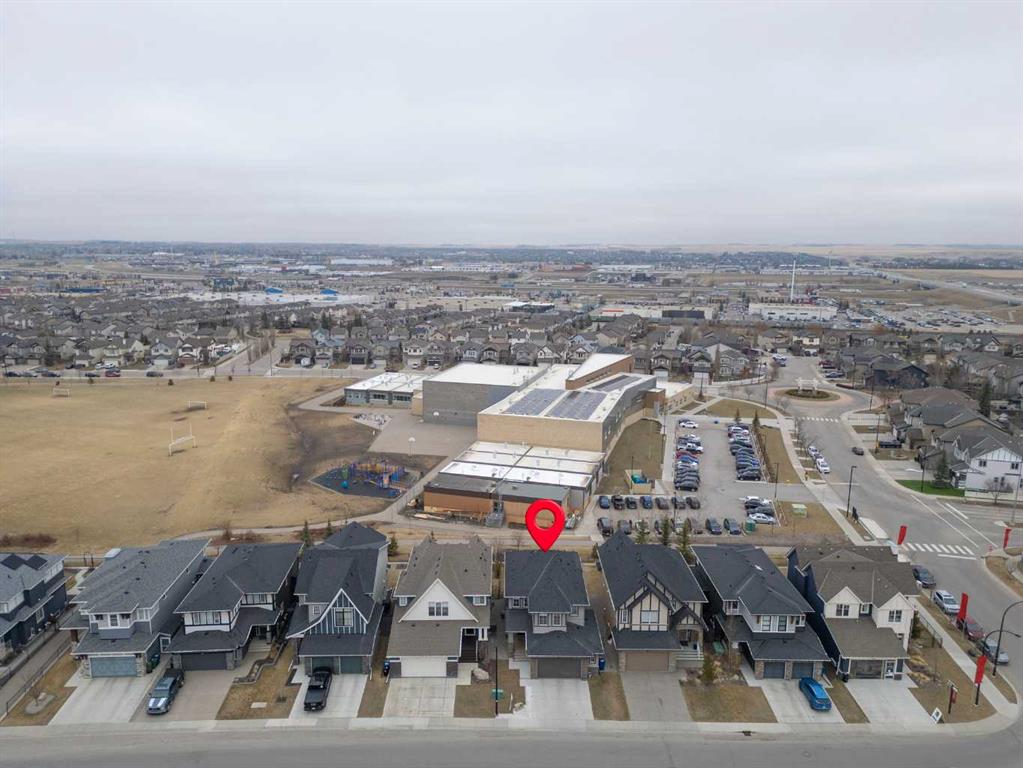 *OPEN HOUSE SUNDAY APRIL 19 AT 1:00PM – 3:00PM* Welcome to a home that feels elevated from the very first step inside. Custom built by Harder Homes, this beautifully crafted two storey in Coopers Crossing offers over 3000 square feet of thoughtfully developed living space. With its distinctive exterior, sloped roof lines, and MASSIVE GARAGE, the curb appeal makes a strong first impression. Inside, the sense of space and intention continues. The main floor unfolds with a grand foyer that opens into a warm and welcoming great room, anchored by coffered ceilings and a GAS FIREPLACE that invites slow evenings and enjoyable gatherings. ENGINEERED HARDWOOD floors carry throughout, paired with 9′ CEILINGS and 8′ DOORS that add both height and presence. The kitchen is truly the heart of the home. Beautifully finished with ceiling height cabinetry, stainless steel appliances, and a generous center island, it offers exceptional storage and space to cook, host, & connect. The dining area sits just off the kitchen, filled with natural light and perfectly positioned for everyday meals or weekend entertaining. A dedicated MAIN FLOOR OFFICE creates a quiet place to work or study, tucked away yet still connected to the rhythm of the home. The mudroom leading to the garage is complete with built-ins and a charming barn door, keeping busy days organized. Every detail feels considered, right down to the Nest thermostat and the added AIR CONDITIONING (2022) for year round comfort. Upstairs, the layout is as functional as it is spacious. The primary suite feels like a true retreat, with room to unwind, a large WALK-IN CLOSET with custom built-ins, and a luxurious 5 piece ensuite featuring dual sinks, a deep soaker tub, & a spacious shower. Two additional bedrooms are generously sized and share a well appointed 5 piece bath with double sinks, ideal for growing families. The BONUS ROOM offers flexibility for movie nights or play space, complete with a rough in for speakers to elevate your home entertainment experience. An upgraded railing adds a refined architectural touch as you move between levels. The fully developed basement extends the living space even further, with a massive recreation and media area that easily adapts to your needs. A 4th bedroom, separate den and full 4 piece bathroom make it perfect for guests, teens, or multi generational living. Backing directly onto a school, the backyard setting offers both privacy and convenience, with no rear neighbours and quick access to green space and community pathways. Living in Coopers Crossing means being part of one of Airdrie’s most sought after neighbourhoods, known for parks, schools, and a strong sense of community. It is the kind of place where families put down roots and stay awhile. Book your private showing and experience it for yourself! *Some photos have been virtually staged*