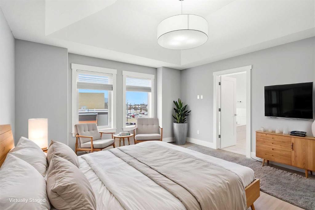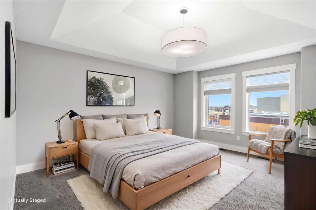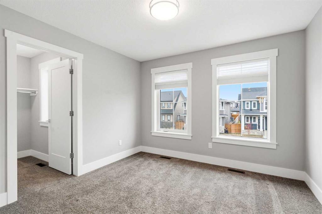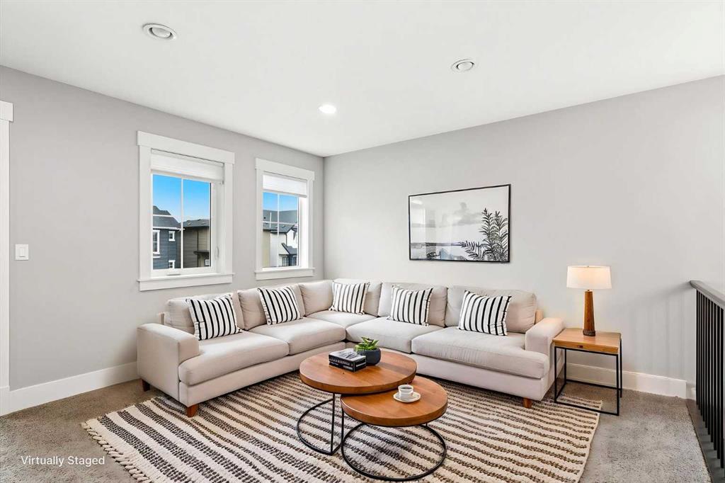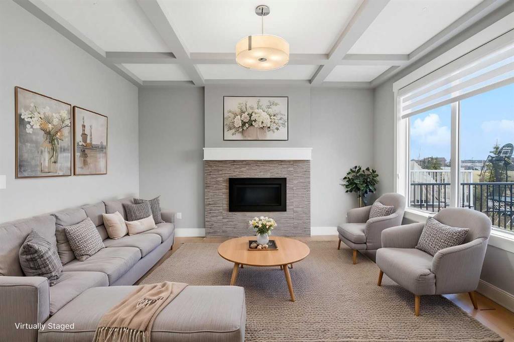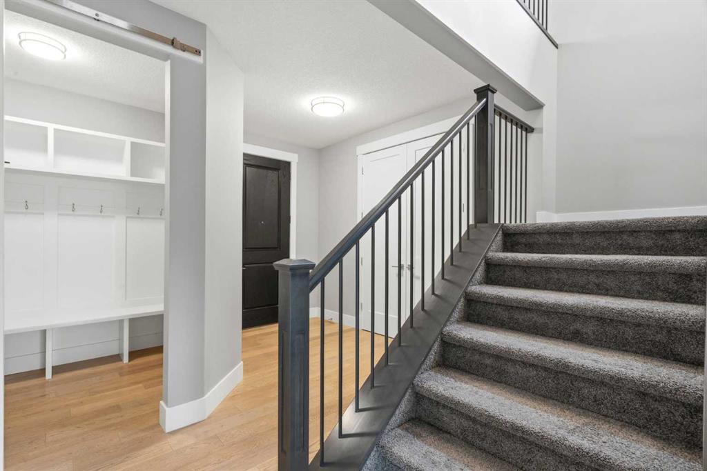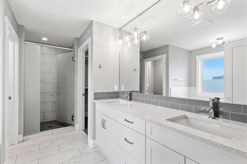 *OPEN HOUSE SUNDAY APRIL 19 AT 1:00PM – 3:00PM* Welcome to a home that feels elevated from the very first step inside. Custom built by Harder Homes, this beautifully crafted two storey in Coopers Crossing offers over 3000 square feet of thoughtfully developed living space. With its distinctive exterior, sloped roof lines, and MASSIVE GARAGE, the curb appeal makes a strong first impression. Inside, the sense of space and intention continues. The main floor unfolds with a grand foyer that opens into a warm and welcoming great room, anchored by coffered ceilings and a GAS FIREPLACE that invites slow evenings and enjoyable gatherings. ENGINEERED HARDWOOD floors carry throughout, paired with 9′ CEILINGS and 8′ DOORS that add both height and presence. The kitchen is truly the heart of the home. Beautifully finished with ceiling height cabinetry, stainless steel appliances, and a generous center island, it offers exceptional storage and space to cook, host, & connect. The dining area sits just off the kitchen, filled with natural light and perfectly positioned for everyday meals or weekend entertaining. A dedicated MAIN FLOOR OFFICE creates a quiet place to work or study, tucked away yet still connected to the rhythm of the home. The mudroom leading to the garage is complete with built-ins and a charming barn door, keeping busy days organized. Every detail feels considered, right down to the Nest thermostat and the added AIR CONDITIONING (2022) for year round comfort. Upstairs, the layout is as functional as it is spacious. The primary suite feels like a true retreat, with room to unwind, a large WALK-IN CLOSET with custom built-ins, and a luxurious 5 piece ensuite featuring dual sinks, a deep soaker tub, & a spacious shower. Two additional bedrooms are generously sized and share a well appointed 5 piece bath with double sinks, ideal for growing families. The BONUS ROOM offers flexibility for movie nights or play space, complete with a rough in for speakers to elevate your home entertainment experience. An upgraded railing adds a refined architectural touch as you move between levels. The fully developed basement extends the living space even further, with a massive recreation and media area that easily adapts to your needs. A 4th bedroom, separate den and full 4 piece bathroom make it perfect for guests, teens, or multi generational living. Backing directly onto a school, the backyard setting offers both privacy and convenience, with no rear neighbours and quick access to green space and community pathways. Living in Coopers Crossing means being part of one of Airdrie’s most sought after neighbourhoods, known for parks, schools, and a strong sense of community. It is the kind of place where families put down roots and stay awhile. Book your private showing and experience it for yourself! *Some photos have been virtually staged*