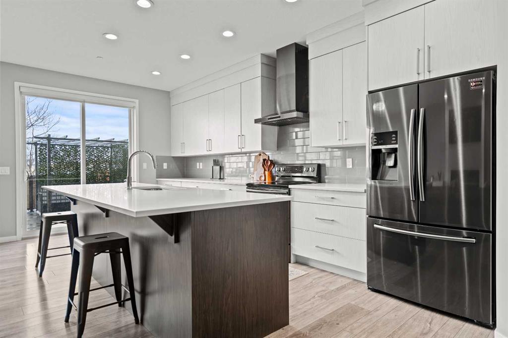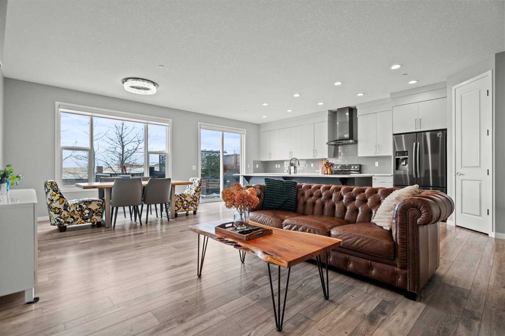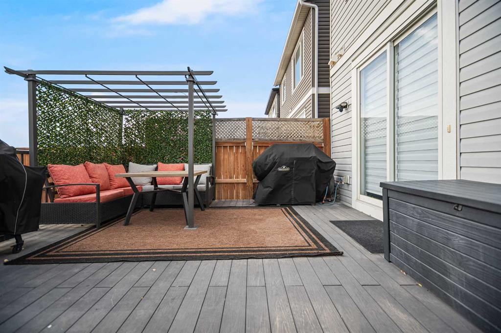 The chef-inspired kitchen is a true highlight, complete with premium stainless steel appliances, quartz countertops, a large center island perfect for gatherings, ample cabinetry, tiled backsplash, and a convenient corner pantry. Sliding patio doors lead to the sunny, fully fenced backyard with mature trees, offering privacy, a large deck, and plenty of space for relaxing, barbecuing, or children and pets to play. A functional mudroom with garage access and a 2-piece powder room complete the main level. Upstairs, the spacious bonus/family room provides versatile living space for movie nights, a play area, or a home office. This level also includes a full 4-piece bathroom and a convenient laundry room. The primary suite offers a peaceful retreat with a walk-in closet and a spa-inspired 4-piece ensuite featuring modern finishes. The fully developed basement adds even more living space with a large recreation room, a 3-piece bathroom, ample storage, and flexibility for future use such as a home gym, hobby room, or guest area. Outside, the finished double attached garage and driveway provide ample parking. The landscaped backyard offers both privacy and beauty, making it ideal for outdoor enjoyment. Located in the vibrant community of Livingston, residents enjoy access to the Community Hub, splash park, playgrounds, parks, green spaces, and extensive walking and bike paths, along with quick access to major roadways, shopping, restaurants, and public transportation. This move-in-ready home offers an exceptional combination of upgrades, space, and location—an opportunity not to be missed.