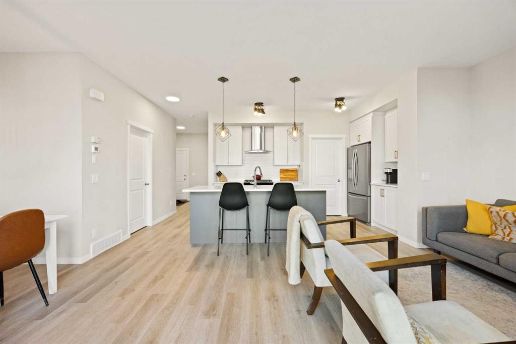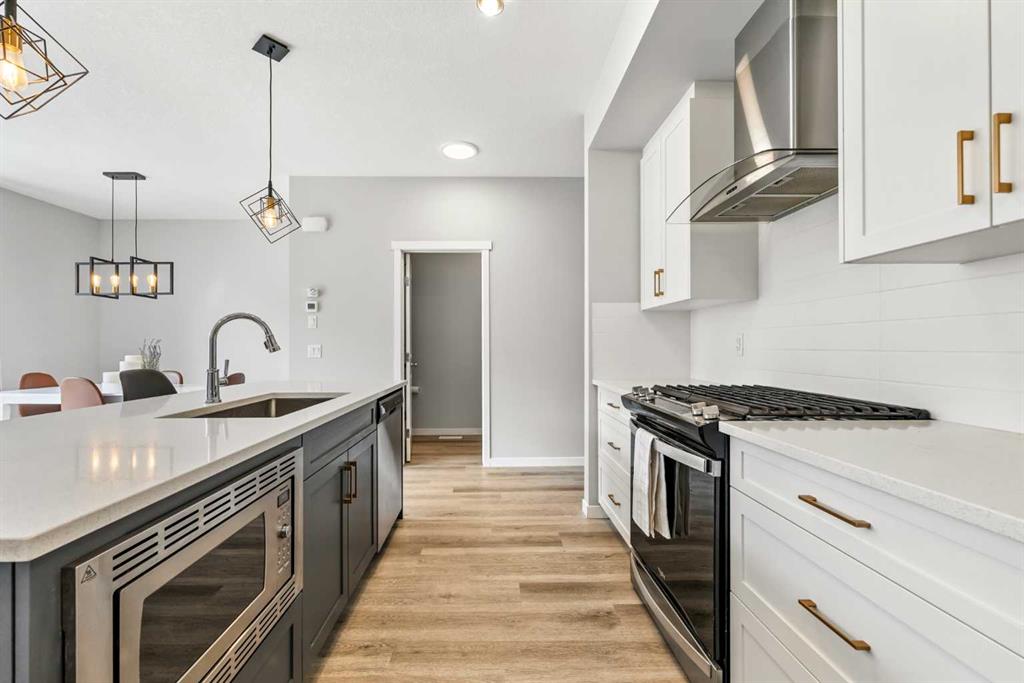 Welcome to your next chapter in the award-winning lake community of Mahogany, where resort-style living meets everyday convenience. This beautifully upgraded home is located on a quiet, family-friendly street – complete with neighborhood Stampede breakfasts and kids playing outside! It has easy access to 88th Street (avoid those roundabouts), the Urban Village amenities, and access to Calgary’s largest freshwater lake! Step inside to a large welcoming foyer that opens to soaring 9’ ceilings and a bright, open-concept main floor. The heart of the home features a gourmet kitchen with an upgraded appliance package including a gas range, high-end fixtures, a walk-through pantry, and full-height cabinetry with soft-close drawers. The spacious dining and living areas flow seamlessly together, creating the perfect setting for entertaining or everyday family life. While the large west-facing backyard extends your living space outdoors – fenced, landscaped, and all ready for you. A stylish half powder room completes the main floor. Upstairs, the design truly shines with a central bonus room that separates the primary suite from the secondary bedrooms. This thoughtful layout gives everyone their own space while keeping the family connected. The primary retreat feels like a private getaway, featuring a spa-inspired ensuite with a rain shower head, tiled tub, double vanity and upgraded medicine cabinet. The kids’ bedrooms, located on the opposite side of the bonus room, are bright and generously sized, with easy access to the full bath. This home is built with lasting quality in mind, featuring a high-efficiency furnace, 50-gallon hot water heater, programmable thermostat, spray foam insulation and energy-efficient, low-E double-glazed windows. The basement is framed and insulated with a large egress window and bathroom rough-in, offering excellent development potential. Additional features include an oversized double attached garage, Decora switches and plugs, LED lighting throughout, and upstairs laundry room with floor drains for convenience. Every detail has been carefully considered, from brushed chrome hardware and modern-profile casings to the ceramic tile backsplash and full-width vanity mirrors. This is more than a house – it’s a lifestyle. Living in Mahogany means four-season recreation right at your doorstep: swimming, skating, fishing, paddleboarding and beach days with family and friends, all while enjoying nearby schools, shops and restaurants. Welcome Home.