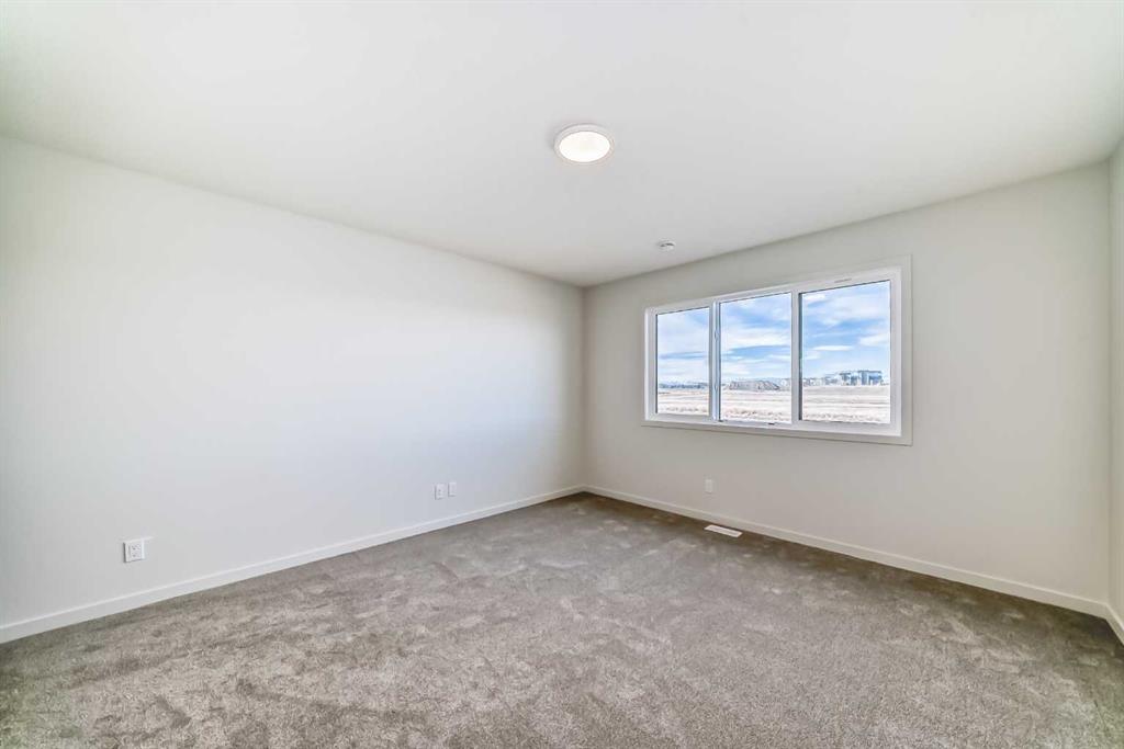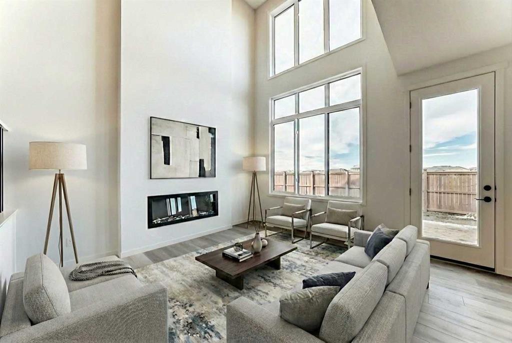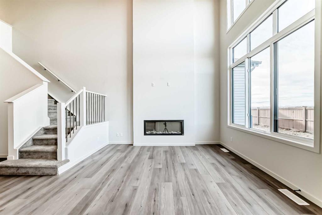 Welcome to the “Grada” by Hopewell Residential, where contemporary design meets family-friendly functionality in the vibrant community of Rangeview. Offering 2,112 sq. ft. of thoughtfully planned living space, this home features 3 spacious bedrooms and a bright, connected layout designed to make everyday life feel easier and more enjoyable. Step inside and you’ll immediately appreciate how the main floor is built for real life. Just off the entry, a versatile flex space with a glass insert door is ideal for a home office, playroom, homework zone, or quiet retreat. From there, the home opens into an inviting dining area and lifestyle room that flow effortlessly for both daily routines and entertaining. The soaring open-to-above living room adds a true wow factor, flooded with natural light and framed by large windows. An electric fireplace anchors the space, bringing a cozy focal point that makes it feel just as inviting on quiet evenings as it does when you’re hosting. At the centre of it all, the kitchen is designed to impress and perform. You’ll love the upgraded layout with a stylish chimney-style hood fan, built-in microwave, extra storage drawers, elegant quartz countertops, and a large island that anchors the space for casual meals, coffee catch-ups, and gathering with friends. The cabinetry is a standout with rich wood grain cabinets throughout, complemented by a stacked square modern backsplash for a crisp, contemporary finish. Thoughtful upgrades continue with spindle railing and knockdown ceiling textures, adding a modern edge across the home. Outside, this home offers something just as valuable: a large west-facing lot that’s made for sunshine and lifestyle. Whether it’s afternoon light pouring into the backyard, room for kids to play, or space to create the outdoor setup you’ve been dreaming of, this is the kind of lot that makes everyday living feel bigger, especially during Calgary’s long summer evenings. Upstairs, you’ll find three good-sized bedrooms, including a luxurious primary suite featuring a step-in shower, your own private retreat. The additional bedrooms are perfect for a growing family, served by a beautiful full bathroom, while the upper floor laundry room is perfectly placed to keep day-to-day life running smoothly. Downstairs, the basement is ready for your future plans with a 9-foot foundation, and the separate side entrance adds valuable flexibility, ideal for a future development or the potential of a mortgage-helper suite (a secondary suite would be subject to approval and permitting by the city/municipality). Set in southeast Calgary, Rangeview is designed around connection, pathways, parks, and a community feel that encourages getting outside, meeting neighbours, and enjoying a more lifestyle-forward neighbourhood. Discover your next chapter with The Grada.
