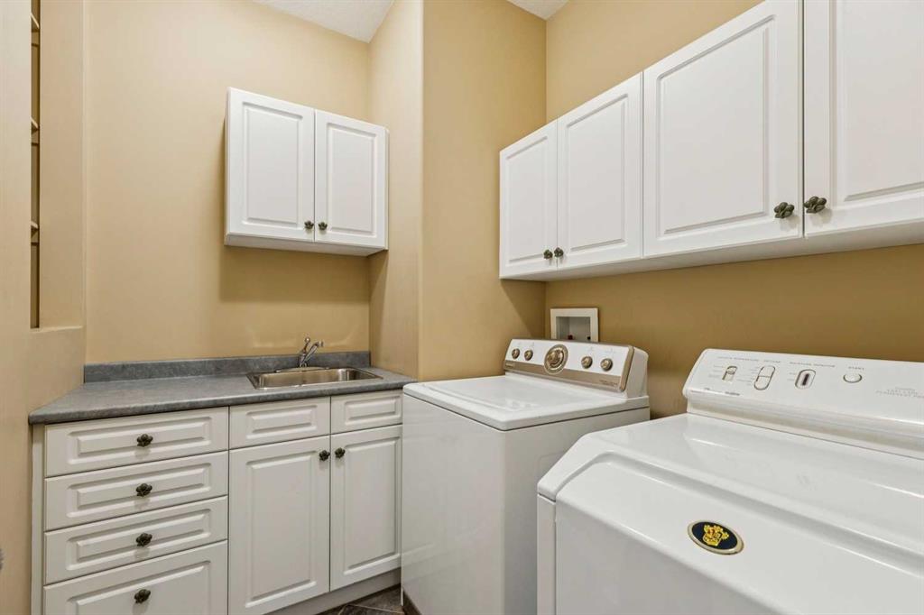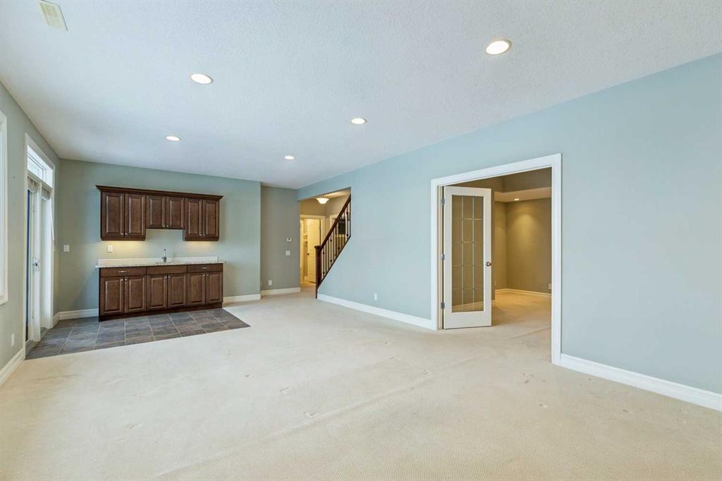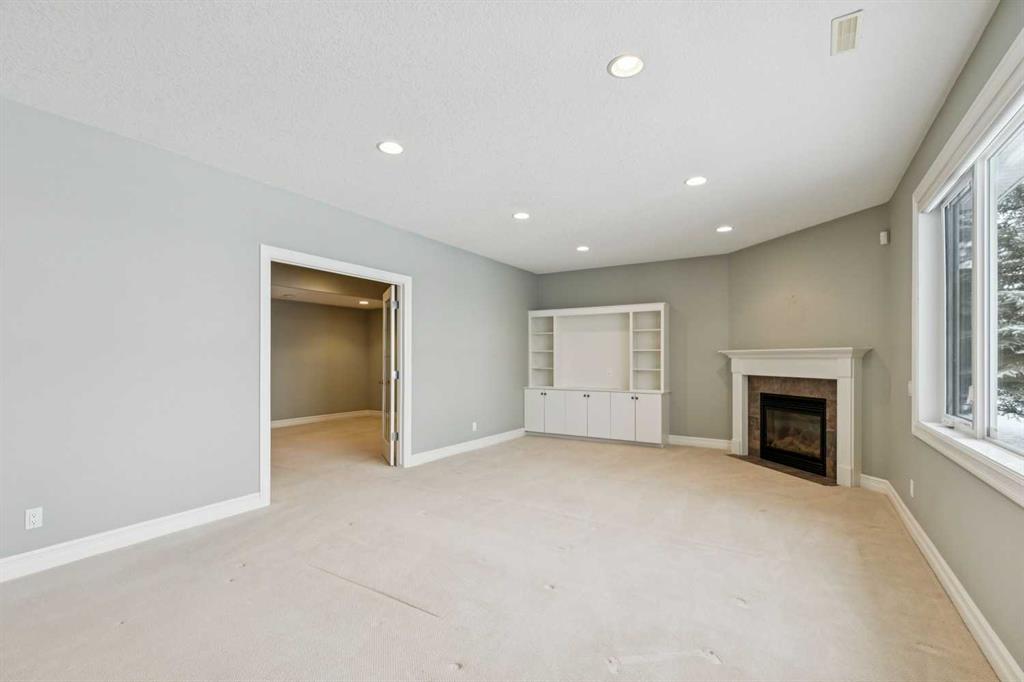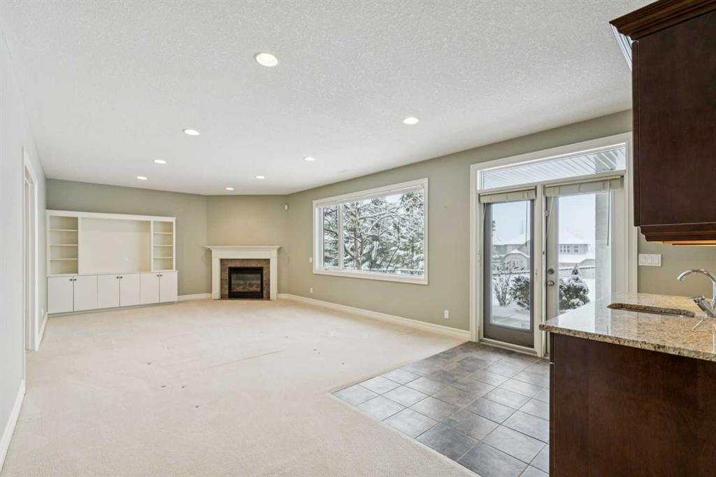 Downsize without compromise in this beautifully designed walkout bungalow villa in the highly sought-after 18+ community of Elysian Villas. Offering nearly 1,700 sq ft on the main floor, this exceptional property delivers the perfect balance of space, comfort, and low-maintenance living—ideal for downsizers or those seeking a low maintenance, lock-and-leave lifestyle with snow removal and landscaping included. The bright, open-concept main level is designed for both everyday living and effortless entertaining. Large rear windows fill the living room, kitchen, and breakfast nook with natural light while showcasing the sunny south exposure. The thoughtfully designed kitchen is complemented by an impressive walk-through butler’s pantry, complete with a second dishwasher, sink, additional dish storage, and a generous walk-in pantry for dry goods. This functional space conveniently connects to the formal dining room at the front of the residence, where elegant bay windows create the perfect setting for hosting family and friends. The main floor primary suite offers a peaceful retreat, complete with a luxurious 5-piece ensuite featuring dual vanities, a walk-in shower, and a deep jetted soaker tub. Main floor laundry adds everyday convenience and enhances the ease of single-level living. The fully developed lower level expands the living space with two additional bedrooms and a 4-piece bathroom, ideal for visiting family or overnight guests. A spacious recreation and family room with fireplace provides the perfect setting for relaxing or entertaining, while a separate den with French doors offers a versatile space well suited for a home office, hobby room, or theatre room. Additional comfort features include central air conditioning and a furnace installed in 2022, providing year-round comfort and peace of mind. Located within this quiet, desirable adult community, this exceptional villa offers an ideal blend of space, elegance, and ease of living, perfect for those seeking a simplified lifestyle without sacrificing comfort. A rare opportunity to secure a walkout bungalow villa in SW Calgary.