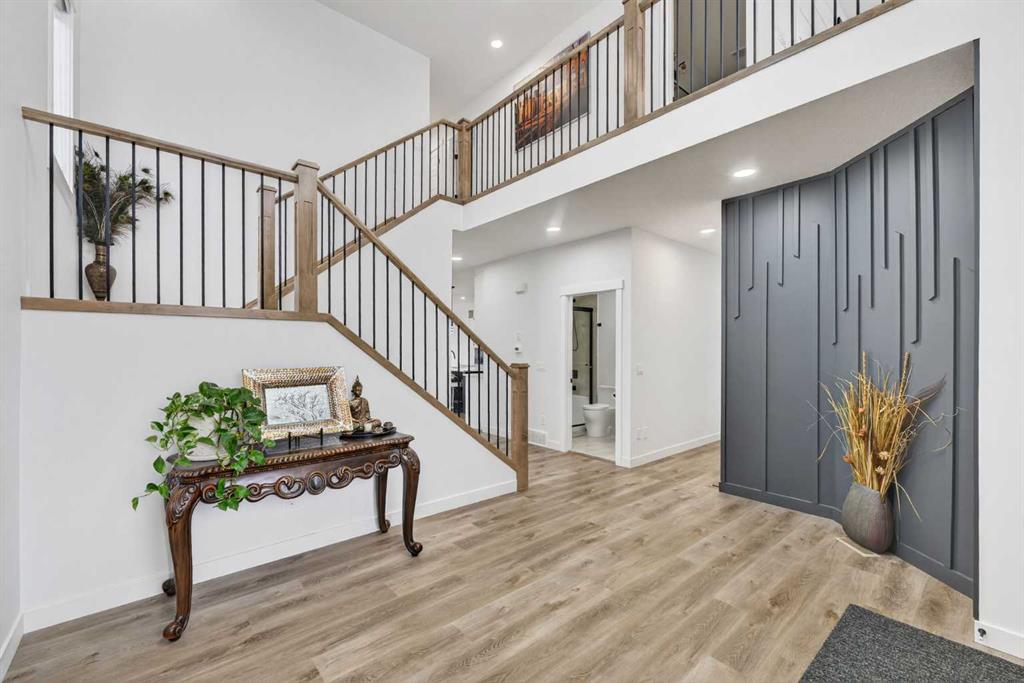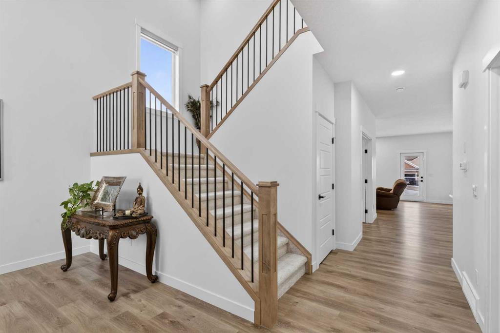 HUGE PIE-SHAPED LOT (10,150 SQFT)!! RV PARKING!! 5 BED 3 BATH!! MAIN FLOOR BED + FULL BATH!! SPICE KITCHEN!! SEPARATE BASEMENT ENTRANCE!! TRIPLE ATTACHED GARAGE!! Welcome to this stunning home in Lake Estates, just steps from the lake and surrounded by space you don’t often find! Sitting on an incredible 10,150 SQFT PIE-SHAPED LOT, this property offers room to breathe, play, park the RV, and truly enjoy outdoor living. The main floor features a bright open layout with a modern kitchen complete with island, built-in features, generous cabinetry, and a separate spice kitchen. The living area is warm and inviting with an electric fireplace and large sunshine windows, flowing seamlessly into the dining area. A main floor bedroom and full 3-piece bath make this home perfect for guests or multigenerational living. Upstairs offers 4 spacious bedrooms and 2 full baths, including a relaxing primary retreat with 5-piece ensuite and walk-in closet. Three additional bedrooms, a 4-piece bath, and laundry on the same level complete the upper floor. The open-to-below foyer adds a grand and airy feel. The basement comes with a separate entrance. The triple attached garage includes a rough-in for heat, all window coverings are brand new, and front landscaping is already completed. Step into the backyard and fall in love — huge, private, and full of possibilities, this oversized pie lot is a rare find. BIG LOT, SMART LAYOUT, PRIME LAKE ESTATES LOCATION — THIS ONE CHECKS ALL THE BOXES!!