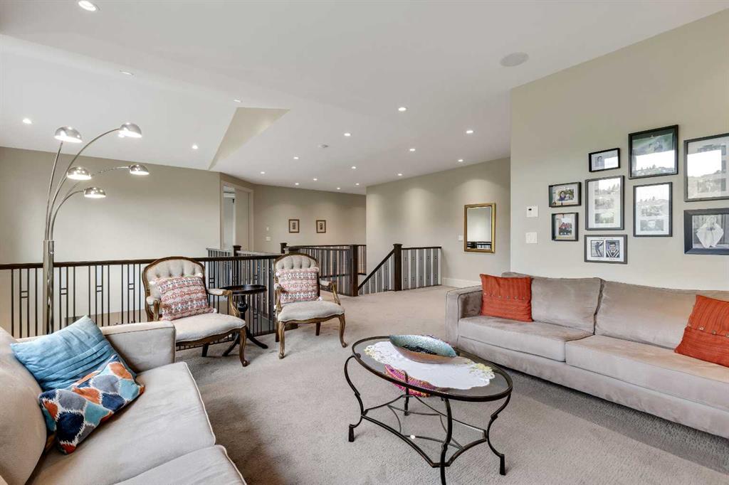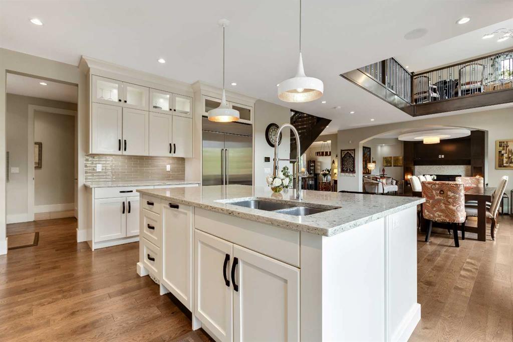 This custom-designed home sits on a rare oversized corner lot backing onto green space in prestigious Mystic Ridge. The main floor features a private den, powder room, office and an open-concept great room flowing into a spacious kitchen and nook. The chef’s kitchen includes high-end appliances (Wolf gas cooktop, Sub-Zero fridge), custom cabinetry, and Caesarstone countertops.