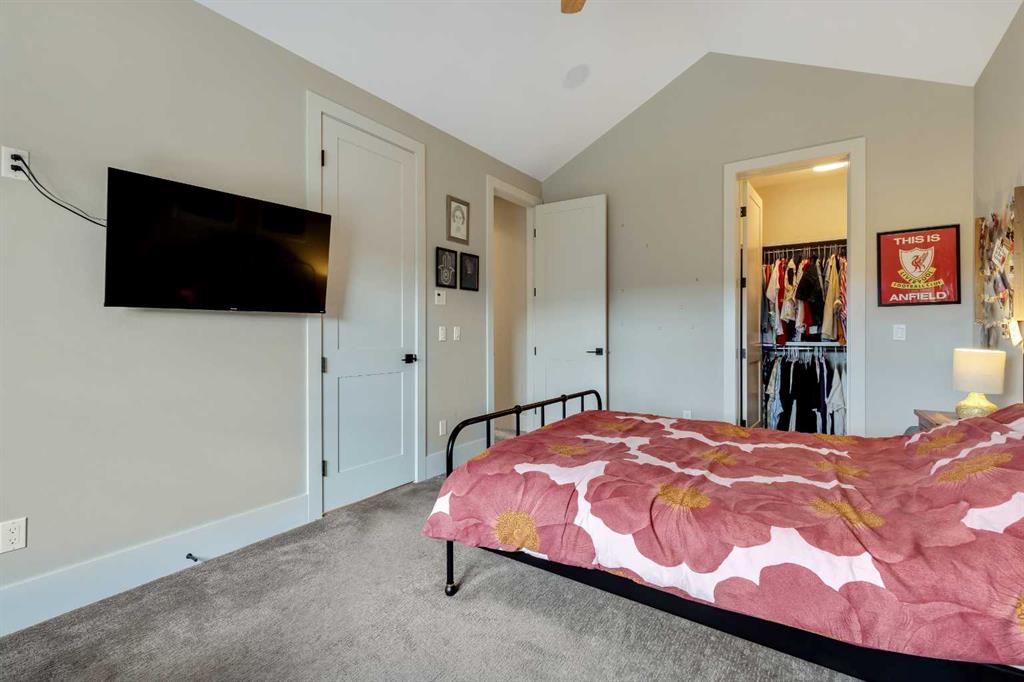 Upstairs, there are four bedrooms, three full bathrooms, and a vaulted bonus room. The luxurious primary suite includes a fireplace, a spa-inspired ensuite with under-floor heating, a steam shower, and dual vanities.