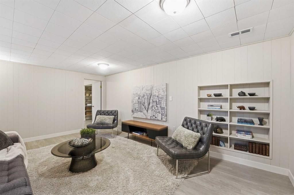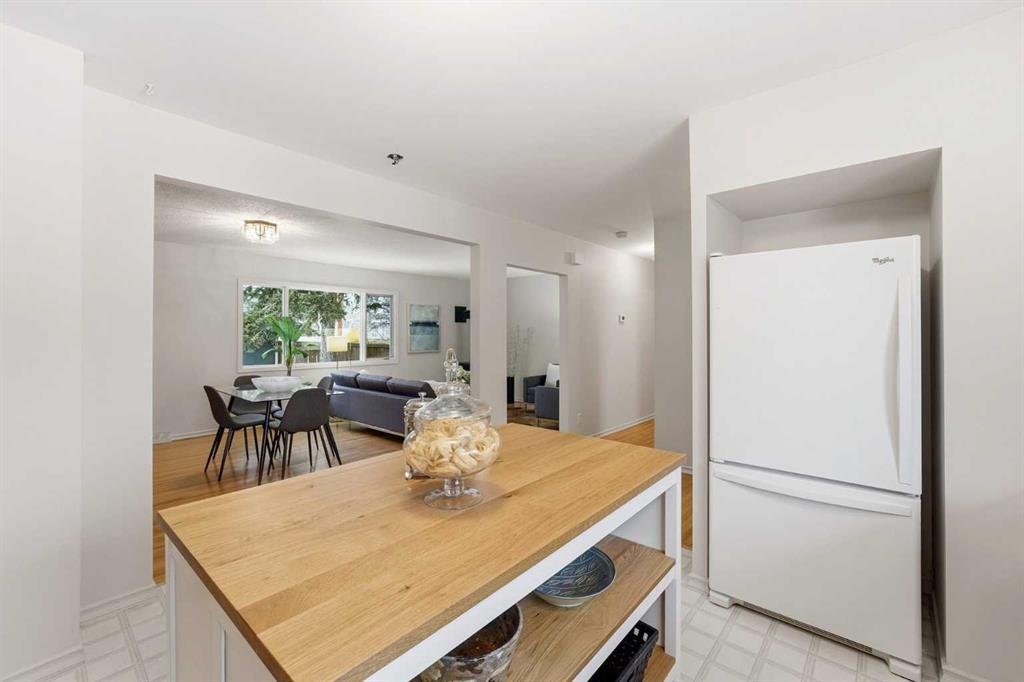 Mid-century charm meets modern comfort in this beautifully maintained home, thoughtfully updated for today’s family while preserving its original character. A gorgeous lot framed by mature trees creates a private, established setting in one of Calgary’s most desirable southwest locations. Inside, an opened wall between the kitchen, living and dining areas establishes a seamless open-concept layout that supports both daily living and entertaining. Original mahogany cabinetry brings warmth and authenticity to the kitchen, complemented by a stainless steel stove and a centre island with breakfast bar seating for casual meals and connection. A full wall of built-ins anchors the dining space, offering an ideal backdrop for a home bar, curated collections or personal décor. Hardwood flooring extends through the living and dining rooms, while an oversized window draws in abundant natural light throughout the day. Evenings invite relaxation around the freestanding gas fireplace, delivering cozy ambiance. 2 main-level bedrooms continue the hardwood flooring and provide comfortable, flexible sleeping or office space, supported by a 4-piece bathroom. Downstairs, the lower level has been updated with durable LVP flooring and a soft neutral palette for easy long-term living. A spacious recreation room encourages movie nights and family gatherings, with additional built-ins offering practical storage and display options. A 3rd bedroom adds versatility for guests, teens or a dedicated workspace, while ample storage and a separate flex area create room for yoga, hobbies or quiet retreat. Outdoor living is equally appealing with a west-facing backyard designed for afternoon sun, summer barbeques and unwinding on the deck beneath towering trees. A detached oversized single garage provides secure parking and additional storage. This phenomenal location elevates everyday life with Edworthy Park, Douglas Fir Trail and Bow River pathways just minutes away, offering endless opportunities for walking, cycling, picnics, and nature watching. Daily convenience remains close at hand with nearby schools, shopping and quick access to Westbrook LRT Station, downtown and the mountains. This beautiful home offers a rare balance of timeless character, thoughtful updates and an exceptional location! OH Sat 12-2