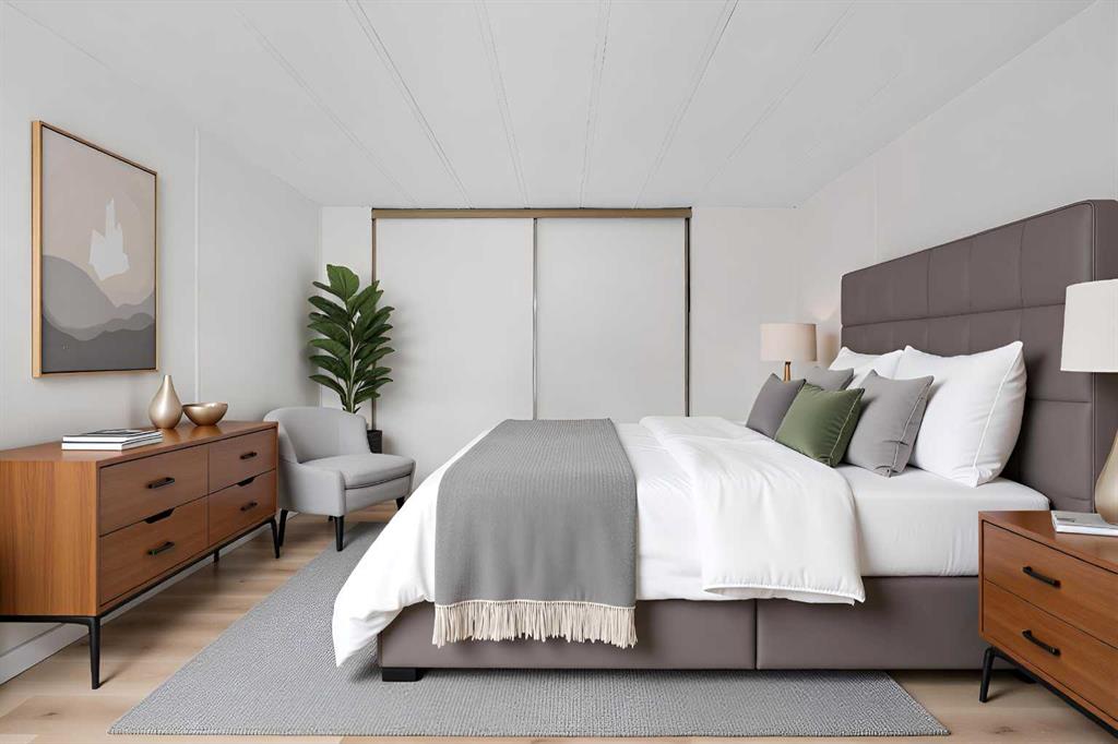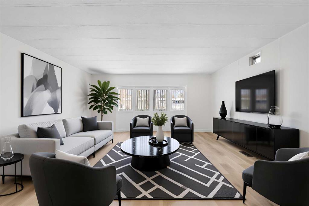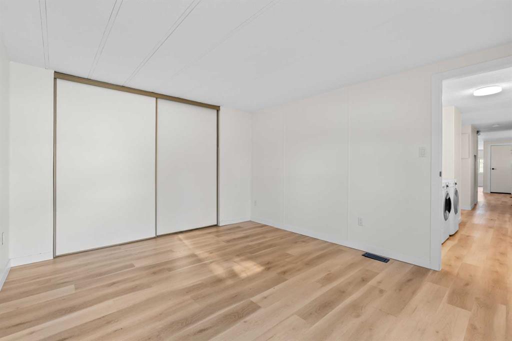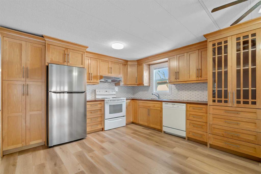 Don’t wait to view this property – you won’t be disappointed! Renovated 3 bed, 1 bath mobile home in the plus-18 section, conveniently located Sunpark Mountview Mobile Home Park. FULLY RENOVATED WITH ALL OF THE BIG-TICKET ITEMS DONE! This home is on a cul-de-sac with quick access to 17 Ave SE, sits across from a green space, and has a large, private backyard. You will see it has a great layout with a large, living room, huge kitchen, and dining area with tons of newer kitchen cupboards, including two pantries, and new stainless-steel fridge. You will find new vinyl plank flooring throughout. The home is painted in a modern color palette designed to suit any decor, a spacious hallway leading to the large 4-pce bath with newer tub, toilet and vanity. The large living brings in natural light through the front windows. The primary bedroom is spacious with a large closet. The second and third bedrooms are a good size, and one can be used as an office or flex room. This home sits on a large lot with parking for two cars side by side in the laneway. Lot rent of $1100 per month includes water, sewer, garbage pickup and snow removal. Unbeatable location: Enjoy quick access to 17 Ave SE, Stoney Trail, Deerfoot Trail, and downtown Calgary. Transit is just a block away, while East Hills Shopping Centre, International Avenue, restaurants, and all amenities are minutes from your door. and all levels of transit, shopping, restaurants and amenities are close by. Plus, Elliston Park is right across the street. Lease approval is required. Pets are allowed with approval. This move-in ready home offers exceptional value for the price. Don’t miss your opportunity—schedule your viewing today and picture yourself settling into this beautifully updated, conveniently located home! Check out the iGuide tour for a virtual walk-through