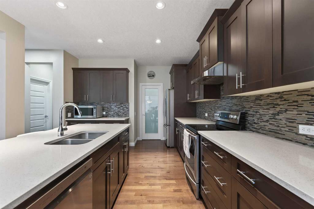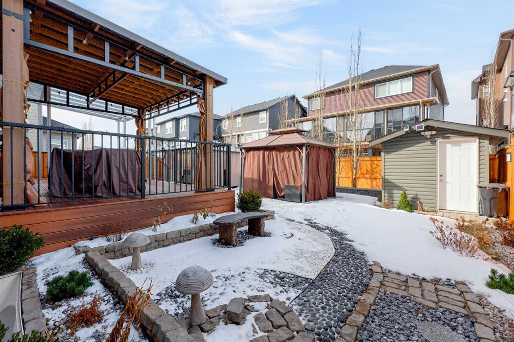 Imagine yourself living in the vibrant lake community of Westmere in the most sought after growing town of Chestermere Lake, where lifestyle, space, and convenience come together. Welcome to this beautifully fully finished two-storey home with a large triple heated attached garage and is ideally located close to walking paths, schools, playgrounds, shopping, and Lake amenities. This east facing home features an open-concept layout. The kitchen is thoughtfully designed with a walk-in pantry, central island, ample cabinetry and counter space, and a generous adjoining dining area. The spacious living room features a cozy gas fireplace, powder room, the den or office complete this level. Upstairs, you’ll find a large bonus room, a full 4-piece bathroom, laundry room and a four well-sized bedrooms, including a spacious primary retreat with a walk-in closet and a 5-piece ensuite. The fully finished basement offers incredible flexibility, with 2 bedroom, a 3-piece bathroom, a comfortable living area, and a mini bar, ideal for hosting extended family or guests. One of the standout features of this home is the professionally landscaped front and back yard, beautifully set up for outdoor enjoyment. The newly installed hardy/composite deck (partially covered by a fibreglass roofing), the hot tub and the 2 Gazebos will surely entertain. This is an outstanding opportunity to own a spacious family home with 3,626 square feet total living area in the vibrant and growing town of Chestermere Lake. MUST SEE!!!