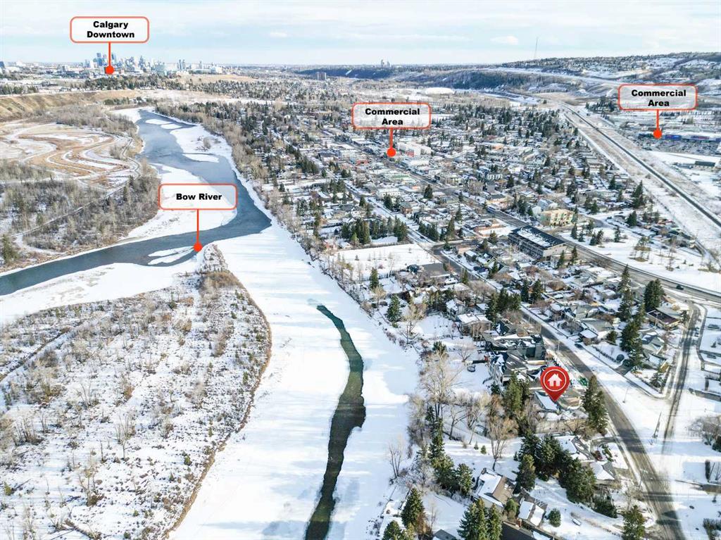 Introducing a truly one-of-a-kind gem nestled along the pristine banks of the Bow River, move-in ready and attractively priced with strong investment potential! This spectacular riverfront property offers a rare combination of luxury, space, and scenic beauty, boasting a triple attached garage and backing directly onto the river for unparalleled views and access. The main level offers a massive private office, living room with custom built-in bookcases, a well-appointed kitchen featuring granite countertops and stainless steel appliances, and a bright family room highlighted by expansive river views. Upstairs includes five generously sized bedrooms and three full bathrooms, providing ample space for family and guests. A fully finished basement adds valuable living space, ideal for recreation, entertaining, or extended family use, with two more bedrooms and a three piece bath. Conveniently located, Bow River pathways are outside your back gate & close by are Bowness Park, schools, shopping, public transit & easy access to 16th Avenue. Don’t miss this opportunity to own a riverfront oasis—properties like this are rarely available and don’t last long.