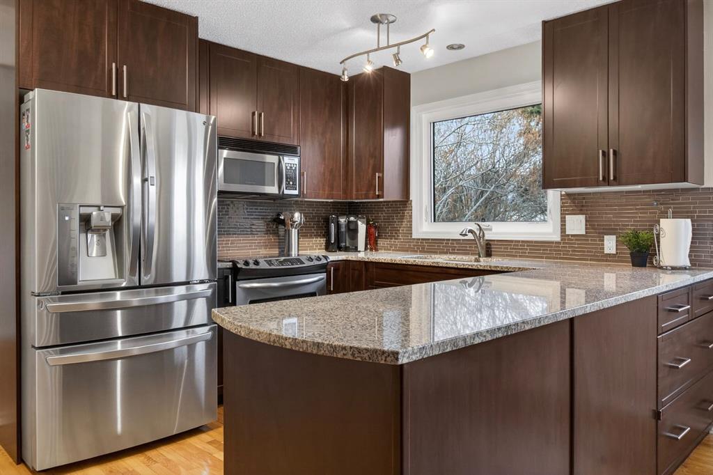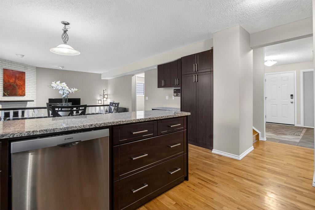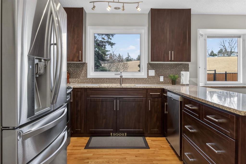 **OPEN HOUSE – FEBRUARY 7, 2026 FROM 12:00 P.M. – 2:00 P.M. ** Welcome to this beautifully updated family home tucked into the heart of Beddington Heights, where comfort, warmth, and everyday convenience come together perfectly. From the moment you step inside, a spacious front foyer sets the tone and leads you into a bright, welcoming living room and elegant formal dining area, the perfect setting for holidays, celebrations, and unforgettable gatherings with family and friends. Rich hardwood floors flow throughout, while the attached double garage makes daily life effortless. At the heart of the home, the open-concept kitchen invites connection and conversation, featuring a large granite island and space for casual dining. Just a few steps down, the sunken family room creates a cozy retreat, complete with a wood-burning fireplace and newer patio door that open to the backyard, a seamless blend of indoor comfort and outdoor living. Step outside and fall in love with the huge south-facing yard backing directly onto peaceful green space. Framed by a new metal fence, this private outdoor oasis is perfect for summer entertaining, kids at play, and pets to roam freely in the sunshine. The main floor also offers a beautifully functional office with custom built-ins and a stylish 2-piece powder room with additional storage, thoughtfully designed for modern family living. Upstairs, three spacious bedrooms provide room for everyone to unwind. The primary retreat is truly special, featuring its own private balcony, a warm gas fireplace, and a 4-piece ensuite — your personal sanctuary for quiet mornings and peaceful evenings. The fully developed basement expands your living space even further with a large family room, a second gas fireplace, laundry, and abundant storage, ideal for movie nights, hobbies, and growing families. This home has been upgraded throughout, including an updated kitchen, newer hot water tank (2021), rubber driveway and garage pad, hail-resistant shingles (2022), new patio doors, new steel fence, new attic insulation, 11 solar panels, central air conditioning, new windows, and a powder-coated exterior designed for long-lasting durability. Perfectly located close to schools, shopping, transit, and Nose Hill off-leash dog park, this home offers the rare combination of thoughtful upgrades, incredible outdoor space, and an unbeatable location. Don’t miss your chance to fall in love with this one of a kind Beddington Heights home backing onto green space.