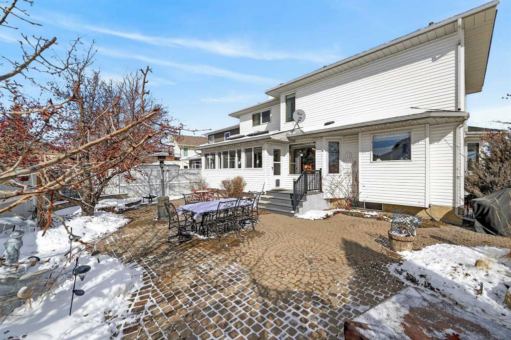 OPEN HOUSE Saturday March 14 from 3pm – 5pm and Sunday March 15 from 11am-1pm…Welcome to this beautifully maintained family home on a spectacular 8700+ sq ft south facing lot in the desirable community of Hawkwood. From the moment you arrive, you will appreciate the space and privacy. This home offers over 3,000sq ft of developed space, a family home at it’s finest with three bedrooms upstairs and a 4th bedroom in the fully finished basement. The primary suite, features a fully renovated spa inspired 4 piece ensuite with a large soaker tub and separate walk in shower. It is a perfect place to relax and recharge. The fully finished basement provides a fantastic entertaining space that is ideal for movie nights, games days or hosting family and friends. Before you step outside, this home offers an enclosed patio, allowing you to enjoy the outdoors without the mosquitos. Once you step outside into this incredible south facing oasis you will instantly appreciate the care that has gone into this property. The massive lot offers beautiful fruit trees, gardens, a huge patio perfect for summer gatherings and convenient back lane that is ideal for RV parking or future possibilities. Homes with lots like this rarely come available! Do not miss this opportunity!!