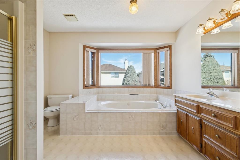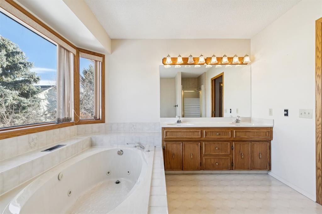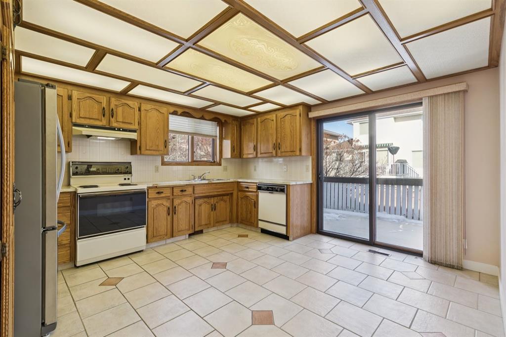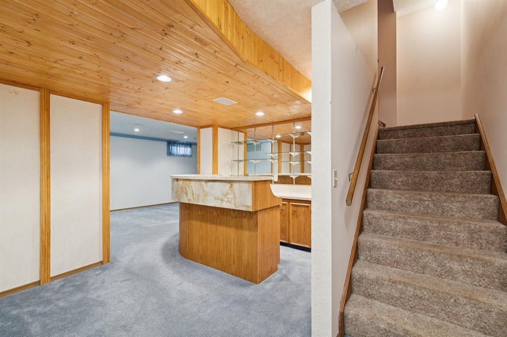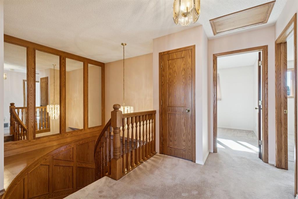 In close proximity to Fish Creek Park and the Canyon Meadows Golf & Country Club, this oversized family home is ready for its next chapter! Woodlands is an incredible community to grow roots and raise a family. With Costco and all of the other shops at Buffalo Run, you never have to travel far to get what you need and there are schools and daycares right in the neighbourhood. Lovingly cared for by the original owner for nearly 40 years, this spacious home has great bones for your renovation ideas! With over 3,200 total square feet in this home, there is space to spread out. The main floor has wow-factor when you first enter, featuring custom tile flooring and a spiral staircase with solid wood bannister & panelling. The hardwood flooring is in immaculate condition in this home! There is ample space for any kitchen layout – bring your ideas! – and the sliding doors to the backyard make entertaining and gardening a breeze. Wood-burning fireplace in the rear family room with custom built-ins plus a powder room nicely tucked away on this level. Upstairs there is even more wow-factor when you enter the double doors to the most enormous primary suite! Bring all of your furniture and all of your clothes – there is room for it all :) Two additional bedrooms with oversized main bathroom. The basement is fully finished with a vintage bar, large rec room, storage/laundry, 3-piece bath and a storage room/den that could be converted to a 4th bedroom. New shingles in 2016 and new furnaces in Dec 2024 along with newer fridge, washer & dryer. Fun feature – the attached garage has a vented wood smoker that the family used for smoked meats over the years! Come and create lasting family memories in this immaculate home in desirable Woodlands!