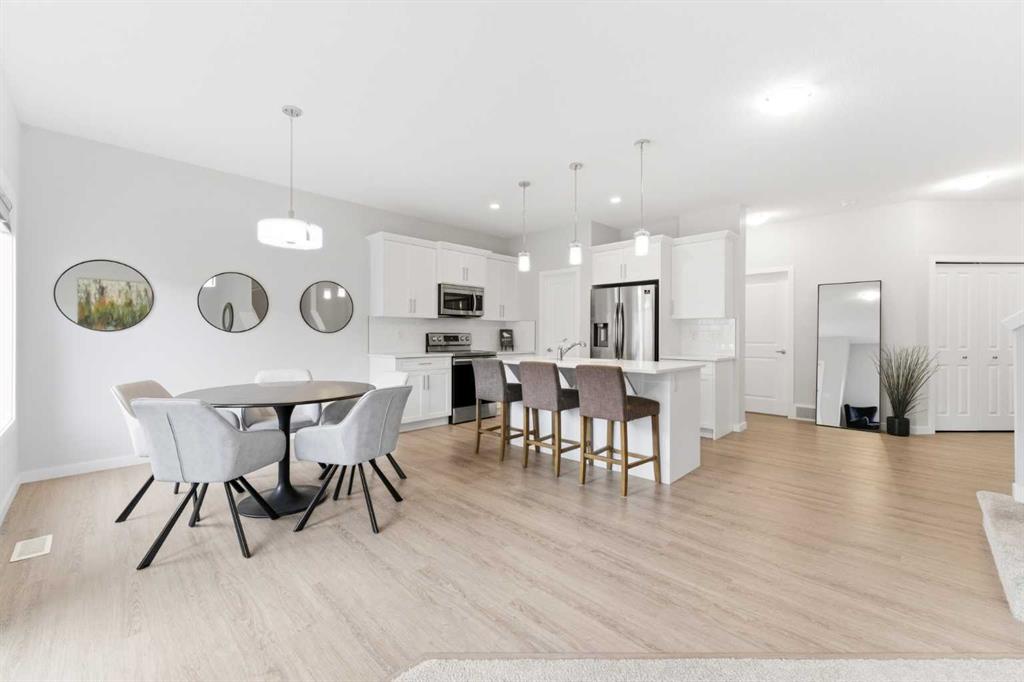 Welcome to this thoughtfully designed two-storey home in the vibrant and family-friendly community of Legacy in Calgary’s southeast—where comfort, functionality, and everyday convenience come together seamlessly. From the moment you step inside, the spacious front foyer sets the tone, offering plenty of room to welcome guests and keep things organized. The main floor unfolds into a bright, open-concept layout that’s ideal for both daily living and entertaining. The kitchen is the true heart of the home, featuring quartz countertops, stainless steel appliances, and a smartly designed corner walk-thru pantry that connects effortlessly to the mudroom with built-in storage and the double attached garage—making grocery runs a breeze. The adjacent dining and living areas are filled with natural light, creating an inviting space to gather. Patio door leads directly to the deck and fully fenced, south-facing backyard—perfect for soaking up the sun, hosting summer BBQs, or letting kids and pets play freely. A convenient 2-piece bath completes the main level. Upstairs, you’ll find a layout that truly works for modern family life. The generous bonus room offers a flexible space for movie nights, a playroom, or a hangout zone for teens. The primary suite provides a private retreat, complete with a large walk-in closet and a well-appointed 5-piece ensuite featuring dual vanities and a relaxing soaker tub. Two additional bedrooms, a full 4-piece bathroom, and upper-level laundry add to the home’s everyday practicality. The unfinished basement comes ready with a bathroom rough-in, offering endless potential to customize and grow with your needs—whether that’s extra living space, a home gym, or a guest suite. Additional highlights include central air conditioning for those warm summer days and a well-maintained exterior that enhances curb appeal. Located in Legacy, you’re surrounded by scenic walking paths, parks, and ponds, with schools, playgrounds, and shopping all within walking distance. Easy access to both Stoney Trail and Macleod Trail ensures a smooth commute and quick connections to the rest of the city. This is a home that balances style, space, and location—ready for its next chapter.