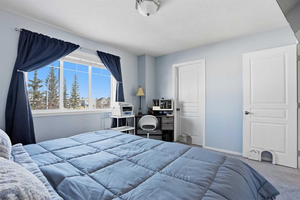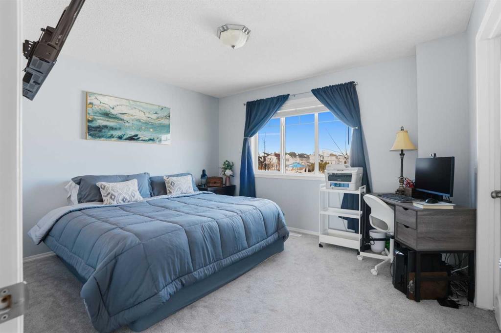 Fantastic Bridlewood attached home that checks all the boxes for a first time buyer or savvy investor, with NO CONDO or HOA FEES! This well cared for home with a bright south-facing backyard and a serene park directly across the street, offers peaceful views and a great sense of community. Inside you will find over 1700 sq ft of developed living space. The main level is warm and inviting, LVP flooring on main floor, new carpet up and downstairs. Front living room, and a bright kitchen complete with maple cabinets, ample counter space, and stainless steel appliances. In-suite washer and dryer and AIR CONDITIONING add everyday convenience. Upstairs, there are 3 bedrooms and a RENOVATED bathroom. The fully finished basement adds incredible value featuring a spacious 4th bedroom, a full 4 pc bath, a large game and recreation room, and plenty of storage, making it perfect for guests, teens, or a home office setup. Step outside to enjoy the SUNNY south facing backyard, featuring a spacious covered deck with curtains that can be closed on hot days, a thriving vegetable garden, and lots of room to relax and entertain. Parking is a major bonus with a single detached garage, an adjacent parking pad ideal for an RV, and plenty of additional parking on street. Located in a quiet, friendly area known for its kind and helpful neighbors, this home is a short 10 minute walk to Bridlewood Elementary School or JJ O’Brien Catholic School, 15 minutes walk to the Glenmore Christian Academy, 4 minutes drive to Sobey’s, an 8 minute drive to the Somerset LRT and the abundant Shawnessy Shopping District. Other local community shops, restaurants, medical clinics and more, easy access to Stoney Trail Ring Road and other major highways, and public transit, make daily life easy and connected.