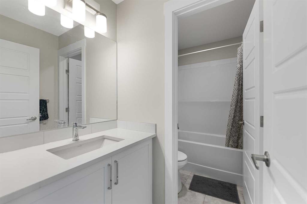 CONVENIENT SIDE ENTRY | MAIN FLOOR BEDROOM & FULL BATH | CORNER LOT. Welcome to this exquisite Anthem BUILT Signature Home in the highly sought-after and fast-growing community of Cornerstone, where modern living meets natural surroundings. This beautifully designed 2-storey home offers over 2,200 sq.ft. of exceptional craftsmanship and thoughtful detail — perfect for large or multi-generational families. Step inside to discover a bright and open floor plan featuring luxurious vinyl plank flooring, high ceilings, and a gourmet kitchen equipped with quartz countertops, sleek stainless steel appliances, including an gas stove, French door refrigerator, and built-in microwave. A walk-through pantry and spacious center island make this kitchen both stylish and functional. The main floor bedroom with a full bath provides the ideal space for guests or extended family, while large windows fill the living and dining areas with natural light, enhancing the corner lot’s open feel. Upstairs, you’ll find four generous bedrooms, including a stunning primary suite with a spa-inspired ensuite featuring dual vanities, a soaker tub, stand-alone shower, and a walk-in closet. A central family room separates the primary suite from the additional bedrooms, ensuring privacy and comfort. The upper level also includes a large laundry room, plus a main bath with dual vanities. Additional highlights include an expanded dining area, side entrance, and corner lot location. Perfectly situated close to the Calgary International Airport, with easy access to Deerfoot Trail and Stoney Trail, and surrounded by ever-growing amenities, this brand-new home delivers both luxury and practicality, ready for your family to move in and enjoy!
