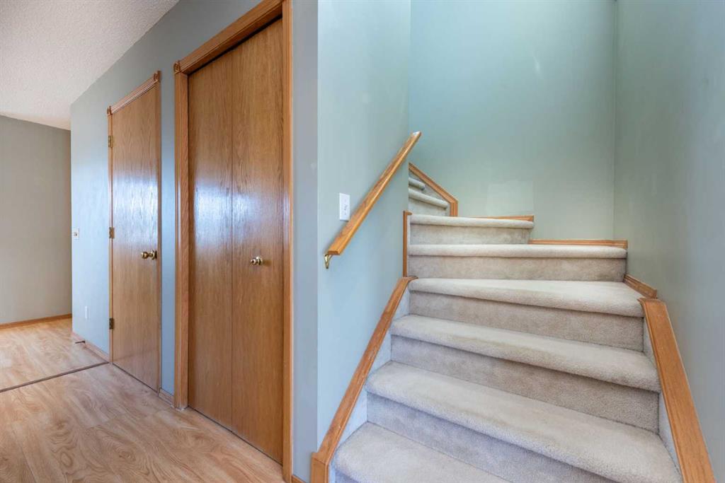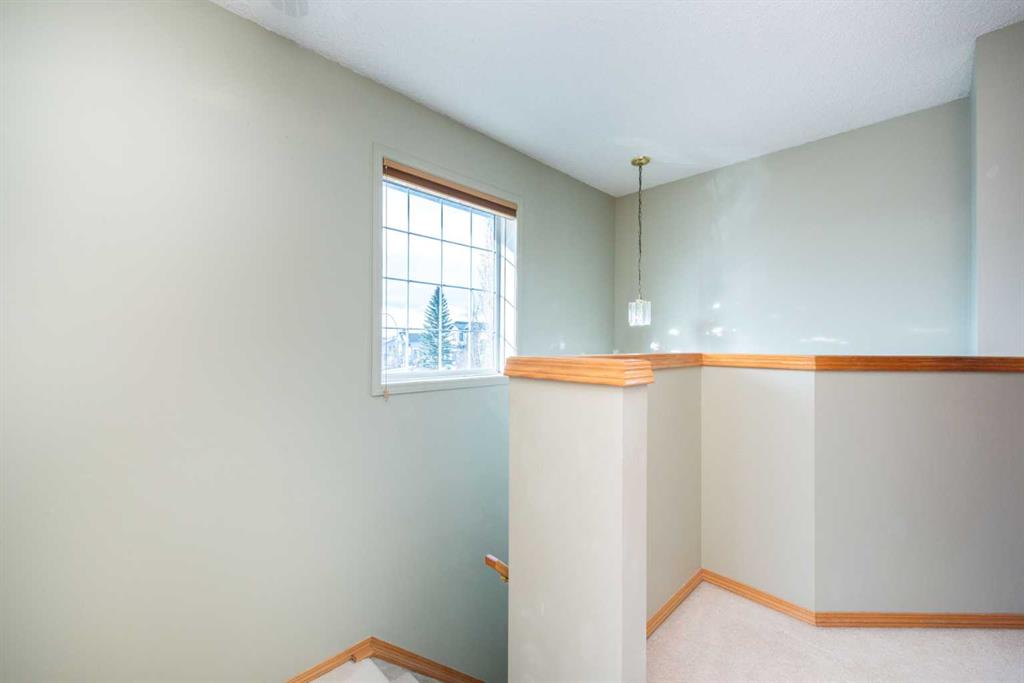 Welcome to this bright inviting family home on a quiet corner lot in the great community of Coventry Hills, just steps from schools and everyday amenities. The main floor features easy-care laminate flooring, a bright living room with a large front window, and a functional kitchen with an island peninsula and spacious dining area—perfect for family meals or entertaining. A convenient 2-piece bathroom and main floor laundry complete the space. Upstairs offers three well-sized bedrooms, each with its own walk-in closet. The primary bedroom also enjoys direct access to the main bathroom. The unfinished basement with roughed-in plumbing is ready for your personal touch. Outside, you’ll find a large yard, parking for two vehicles, and a storage shed for extra storage. Recent updates include roof and siding (2025) and furnace and hot water tank (2023), making this home a smart and worry-free choice. Book your showing today.