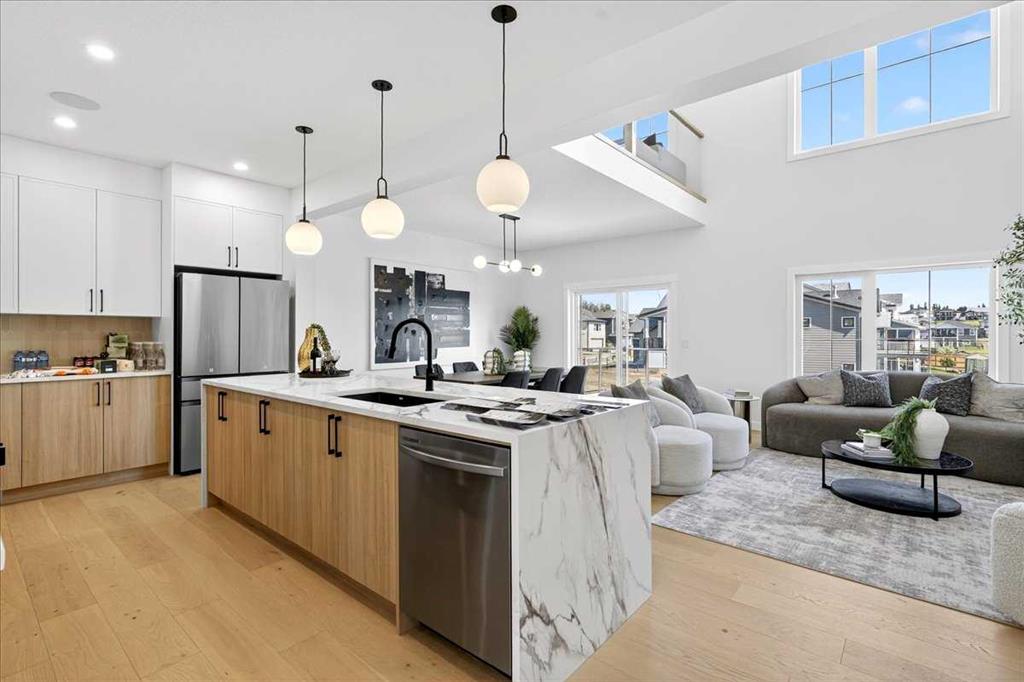 Backing directly onto a tranquil pond with a scenic walking path, this elegant two-storey home offers refined living in a highly desirable, amenity-rich community featuring a tennis court, beautiful pond, and future lake access. With over 2,000 sqft of thoughtfully designed above-grade living space, the main floor presents a bright, open-concept layout ideal for both everyday comfort and upscale entertaining. The living room is anchored by a sophisticated fireplace and flows seamlessly into the well-appointed kitchen with pantry and an inviting dining area, all positioned to take full advantage of the peaceful water views. A private main-floor office, stylish powder room, and functional mudroom with access to the oversized double attached garage complete this level. Upstairs, the primary retreat features a walk-in closet and a spa-inspired 5-piece ensuite. Two additional bedrooms, a well-designed 4-piece bathroom, upper-floor laundry, and a spacious bonus room open to below provide flexibility for family living or hosting guests. The full unfinished walkout basement offers exceptional future development potential while providing direct access to the backyard and walking path beyond. Enjoy morning coffees and evening sunsets overlooking the pond, with the added benefit of a community designed for an active and connected lifestyle. A rare opportunity to own a beautifully positioned home where luxury, comfort, and lifestyle seamlessly come together. Book your private viewing today!