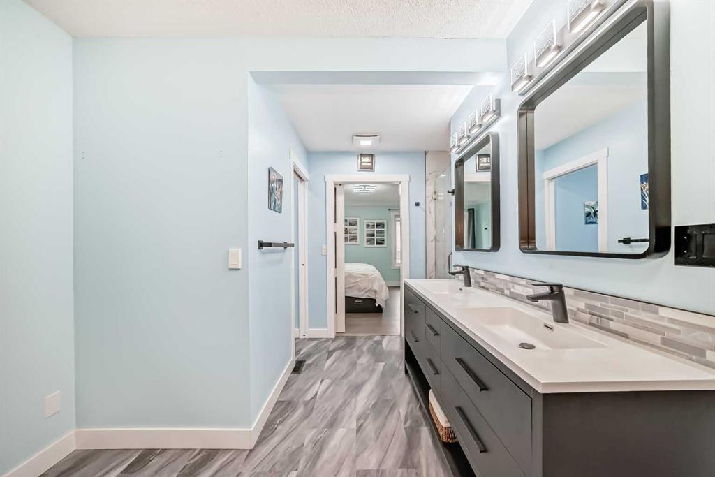 Large renovated bungalow in Suntree! So much space (almost 3000 sf developed) and over $135 000 of renovations in the last 2 years! The previous owners replaced shingles in 2017 and windows in 2021 and the current owners removed poly-b, replaced 2 furnaces, added AC, completely renovated the kitchen, added a huge ensuite and replaced all the flooring (LVP). Main floor features living/dining room with French doors. The renovated kitchen features dekton countertops, oversized upper cabinets and plenty of lower pot drawers. Gas stove, fridge with water dispenser, and OTR microwave are all less than 2 years old. Cozy family room has gas fireplace and opens up onto the south facing covered deck with sun shades. Lower deck has been extended if you want to soak up the sun! Primary bedroom now has a huge ensuite/walkin closet with large shower, double sinks and private WC. (Easy to convert this room back to a 3rd main floor bedroom). Second main floor bedroom is used as a home office. Main bathroom was also renovated. Downstairs in the sunshine basement, you will find 2 more bedrooms , 4 piece bathroom and rec room with kitchenette. Perfect for teens looking for their own space to hang out. Other improvements in the last 2 years include central vac, garage door, additional attic insulation, baseboard, casing, doors, lighting…the list goes on!